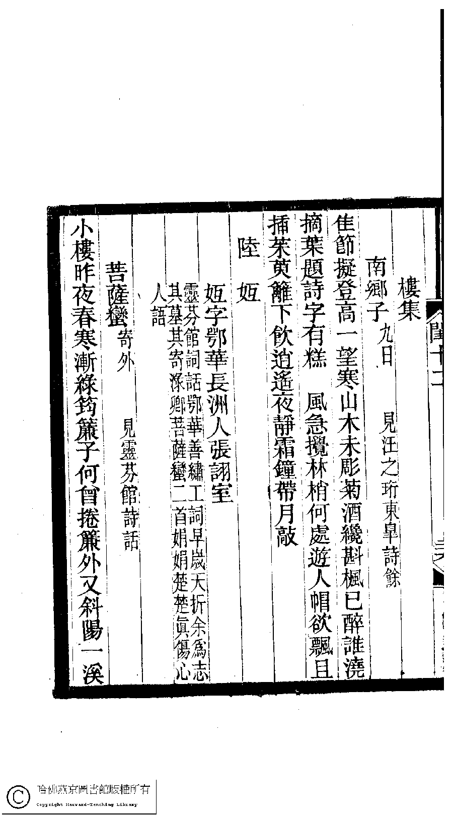 | (PRINT FRIENDLY VERSION) 閨秀詞鈔﹕十六卷(清徐乃昌輯)。清宣統元年(1909)小檀欒室刻本。 ![]() Page : 12.26b | click for larger image | Back |