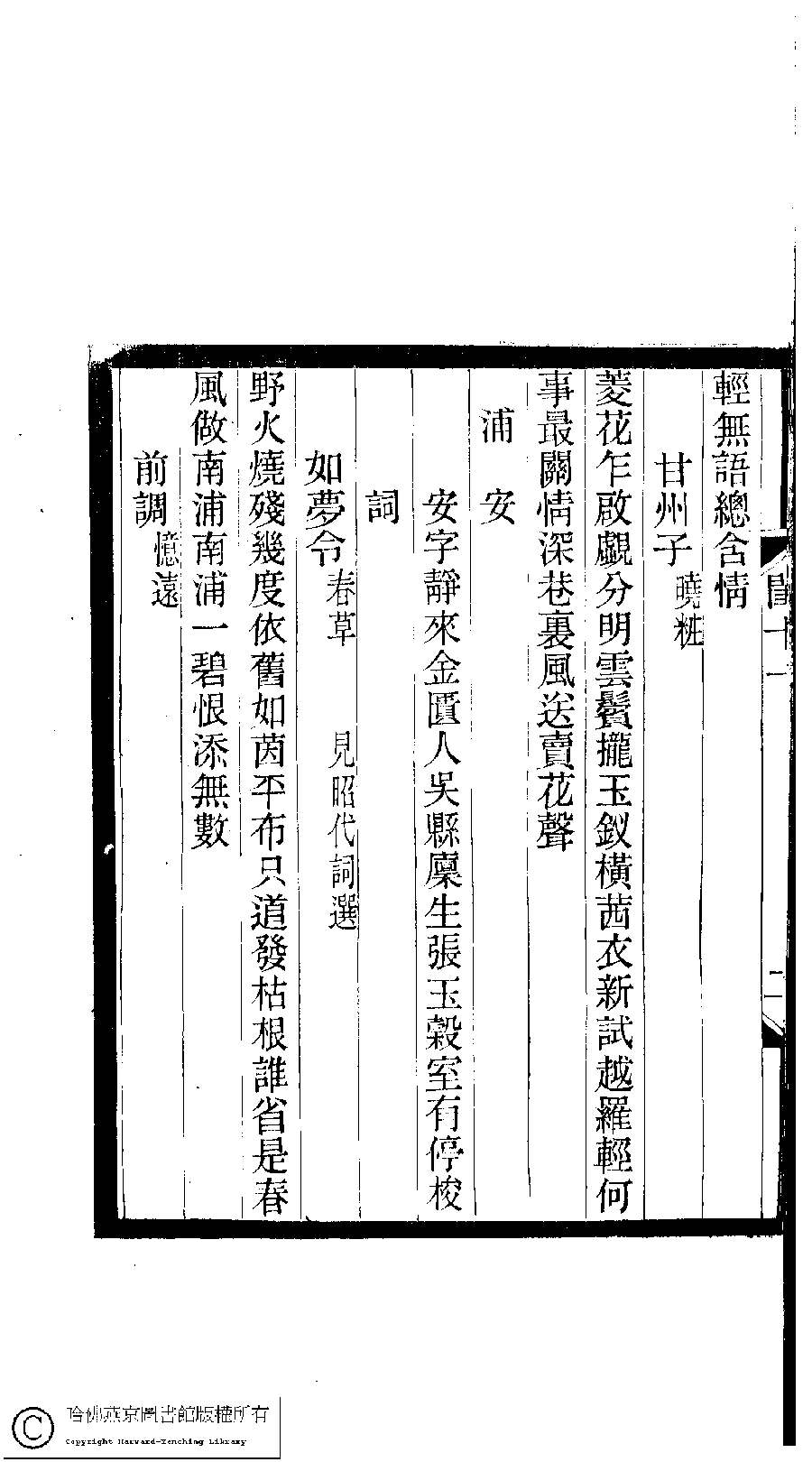 | (PRINT FRIENDLY VERSION) 閨秀詞鈔﹕十六卷(清徐乃昌輯)。清宣統元年(1909)小檀欒室刻本。 ![]() Page : 11.2b | click for larger image | Back |
