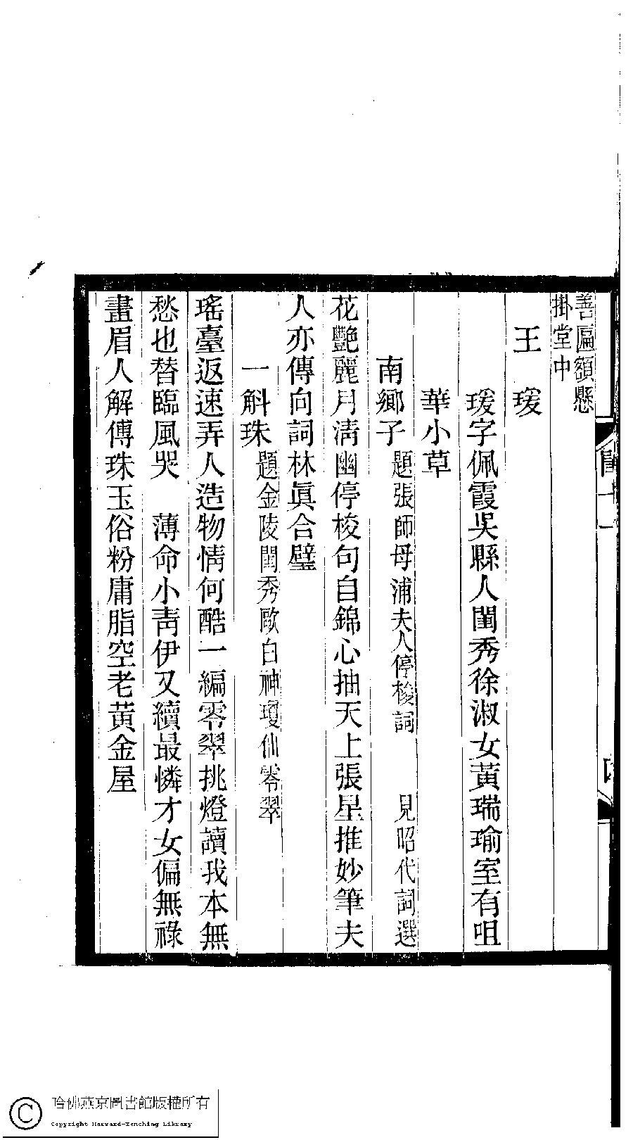 | (PRINT FRIENDLY VERSION) 閨秀詞鈔﹕十六卷(清徐乃昌輯)。清宣統元年(1909)小檀欒室刻本。 ![]() Page : 11.4b | click for larger image | Back |