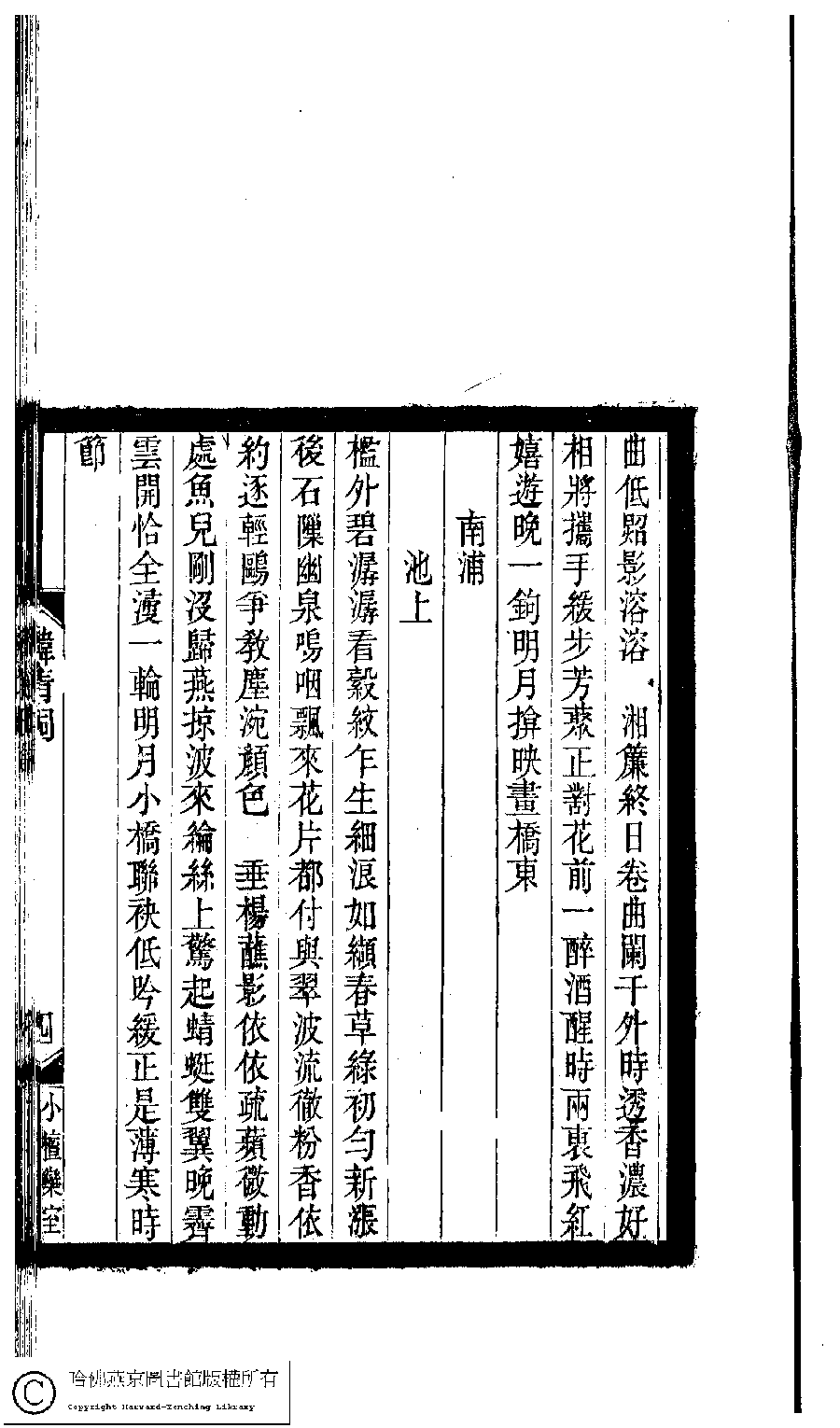 | Appears in: Xiao tan luan shi hui ke gui xiu ci: 10 ji 100 zhong 100 juan (edited by Xu Naichang, Qing dynasty): Wei qing ci: 1 juan |