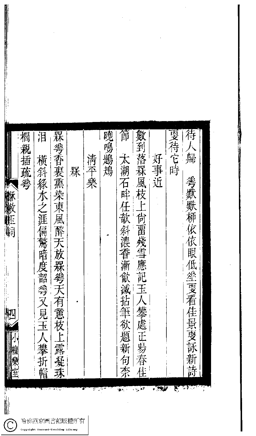 | Appears in: Xiao tan luan shi hui ke gui xiu ci: 10 ji 100 zhong 100 juan (edited by Xu Naichang, Qing dynasty): He shu yu ci: 1 juan |