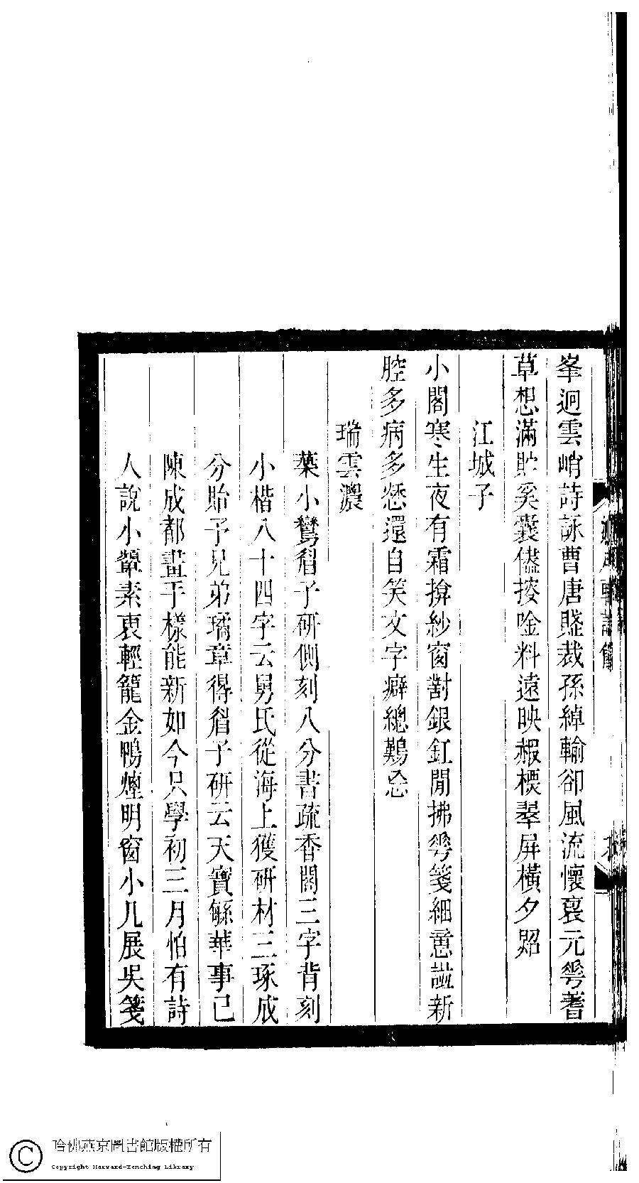 | Appears in: Xiao tan luan shi hui ke gui xiu ci: 10 ji 100 zhong 100 juan (edited by Xu Naichang, Qing dynasty): Lü yue xuan shi yu: 1 juan |