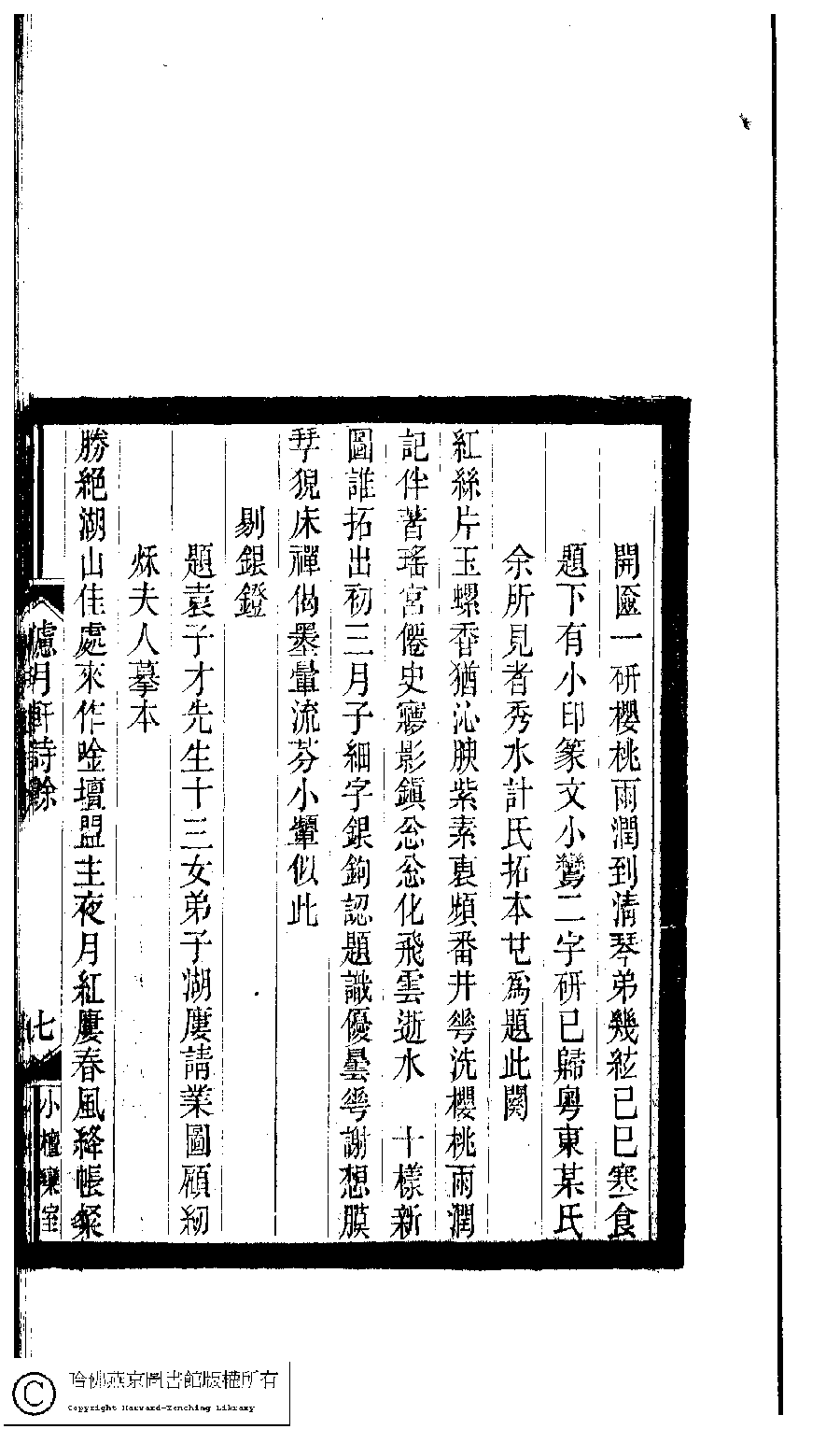 | (PRINT FRIENDLY VERSION) 小檀欒室彙刻閨秀詞﹕十集一百種一百卷(清徐乃昌輯) : 濾月軒詩餘﹕一卷。清光緒二十二年(1896)南陵徐氏刻本。 ![]() Page : 濾月軒詩餘.7a | click for larger image | 小檀欒室彙刻閨秀詞﹕十集一百種一百卷(清徐乃昌輯) : 濾月軒詩餘﹕一卷。清光緒二十二年(1896)南陵徐氏刻本。![]() Page : 濾月軒詩餘.6b | click for larger image | Back |
