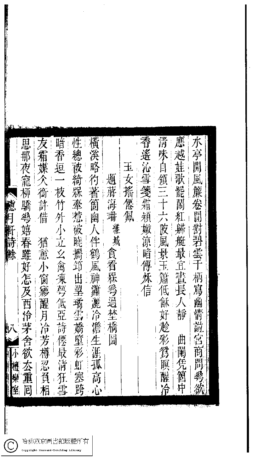 | Appears in: Xiao tan luan shi hui ke gui xiu ci: 10 ji 100 zhong 100 juan (edited by Xu Naichang, Qing dynasty): Lü yue xuan shi yu: 1 juan |