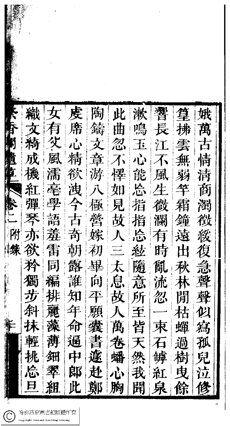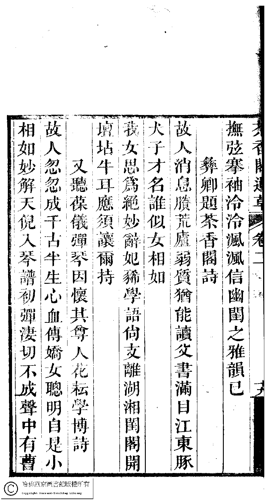 | (PRINT FRIENDLY VERSION) 茶香閣遺草﹕二卷(清黃婉璚撰)。清道光十年(1830)刻本。 ![]() Page : 2.20b | click for larger image | 茶香閣遺草﹕二卷(清黃婉璚撰)。清道光十年(1830)刻本。![]() Page : 2.20a | click for larger image | 茶香閣遺草﹕二卷(清黃婉璚撰)。清道光十年(1830)刻本。![]() Page : 2.19b | click for larger image | Back |