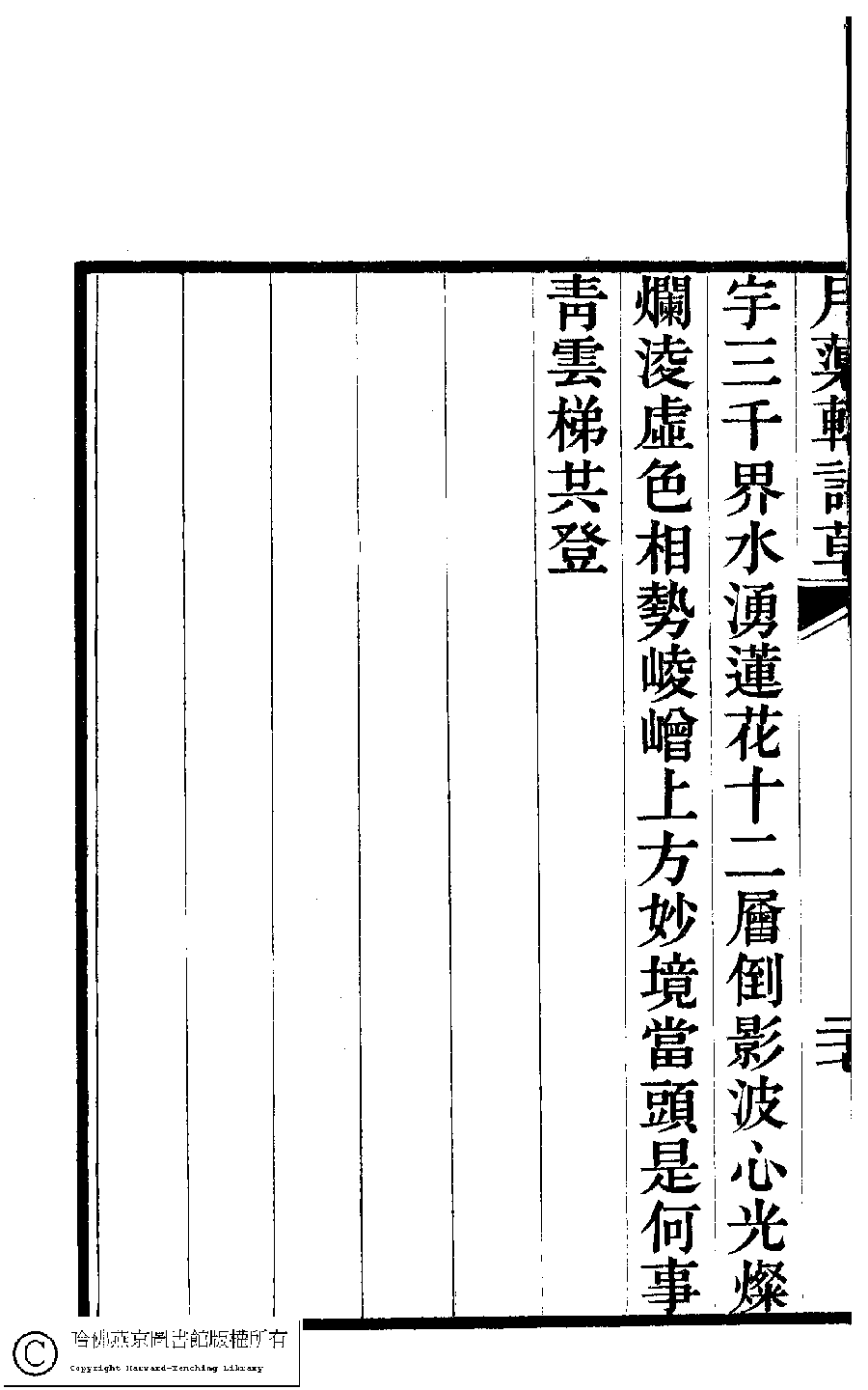 | (PRINT FRIENDLY VERSION) 月蕖軒詩草﹕一卷﹐詩餘﹕一卷(清袁鏡蓉撰)。清道光二十八年(1848)刻本。 ![]() Page : 1.27b | click for larger image | 月蕖軒詩草﹕一卷﹐詩餘﹕一卷(清袁鏡蓉撰)。清道光二十八年(1848)刻本。![]() Page : 1.27a | click for larger image | Back |