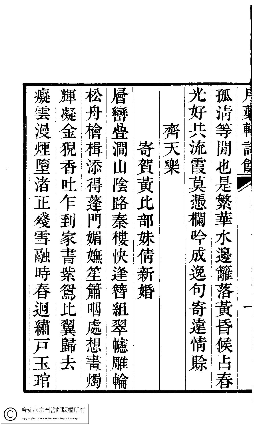 | Appears in: Yue qu xuan shi cao: 1 juan, shi yu: 1 juan (by Yuan Jingrong, Qing dynasty) |