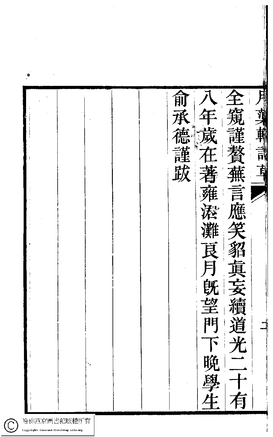 | (PRINT FRIENDLY VERSION) 月蕖軒詩草﹕一卷﹐詩餘﹕一卷(清袁鏡蓉撰)。清道光二十八年(1848)刻本。 ![]() Page : 跋.2b | click for larger image | 月蕖軒詩草﹕一卷﹐詩餘﹕一卷(清袁鏡蓉撰)。清道光二十八年(1848)刻本。![]() Page : 跋.2a | click for larger image | 月蕖軒詩草﹕一卷﹐詩餘﹕一卷(清袁鏡蓉撰)。清道光二十八年(1848)刻本。![]() Page : 跋.1b | click for larger image | 月蕖軒詩草﹕一卷﹐詩餘﹕一卷(清袁鏡蓉撰)。清道光二十八年(1848)刻本。![]() Page : 跋.1a | click for larger image | Back |