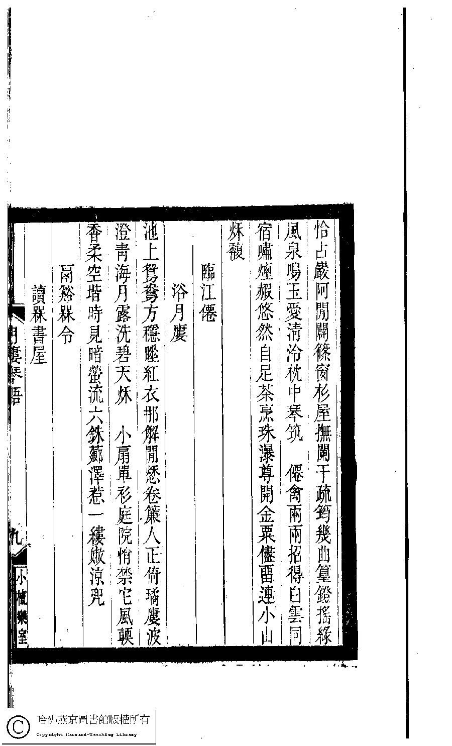 | Appears in: Xiao tan luan shi hui ke gui xiu ci: 10 ji 100 zhong 100 juan (edited by Xu Naichang, Qing dynasty): Yue lou qin yu: 1 juan |