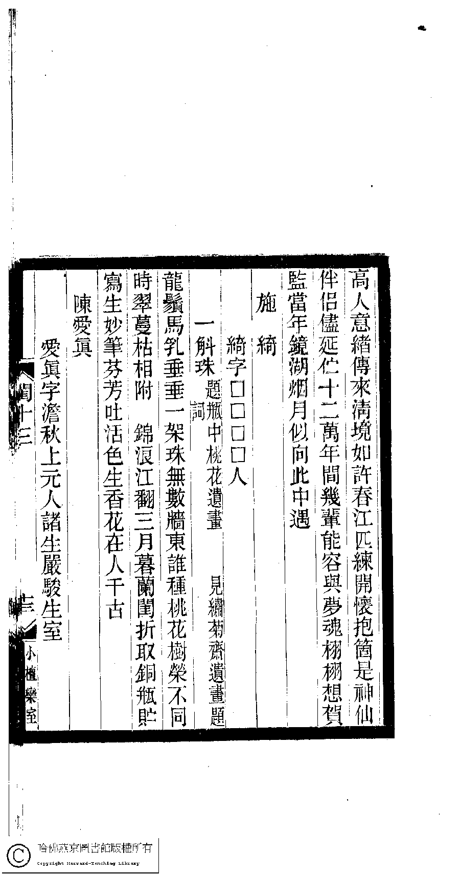 | (PRINT FRIENDLY VERSION) 閨秀詞鈔﹕十六卷(清徐乃昌輯)。清宣統元年(1909)小檀欒室刻本。 ![]() Page : 13.13a | click for larger image | Back |