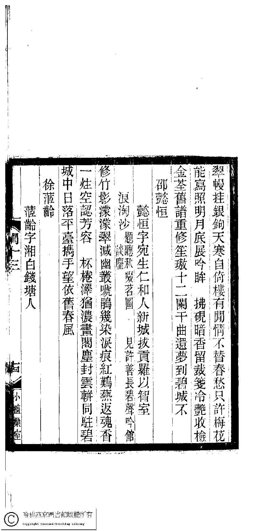 | (PRINT FRIENDLY VERSION) 閨秀詞鈔﹕十六卷(清徐乃昌輯)。清宣統元年(1909)小檀欒室刻本。 ![]() Page : 13.14a | click for larger image | Back |