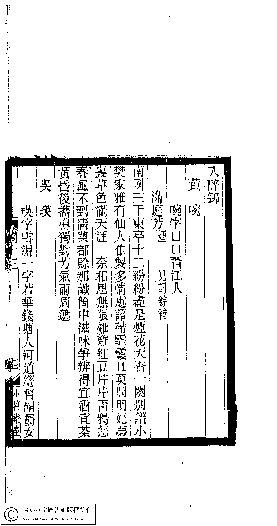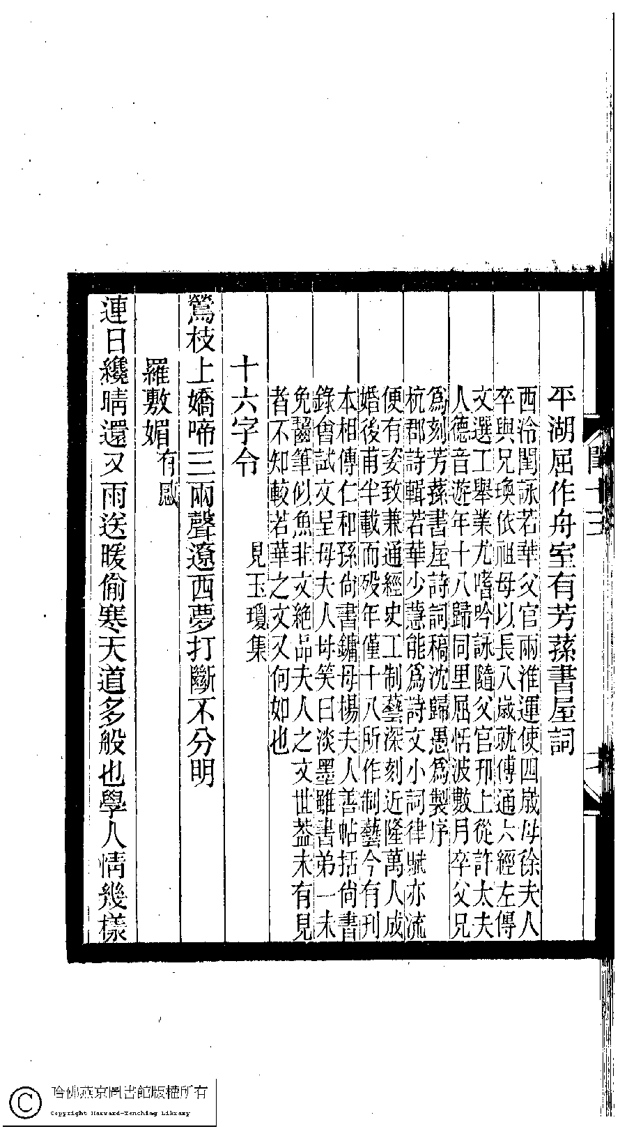 | (PRINT FRIENDLY VERSION) 閨秀詞鈔﹕十六卷(清徐乃昌輯)。清宣統元年(1909)小檀欒室刻本。 ![]() Page : 13.17b | click for larger image | 閨秀詞鈔﹕十六卷(清徐乃昌輯)。清宣統元年(1909)小檀欒室刻本。![]() Page : 13.17a | click for larger image | Back |