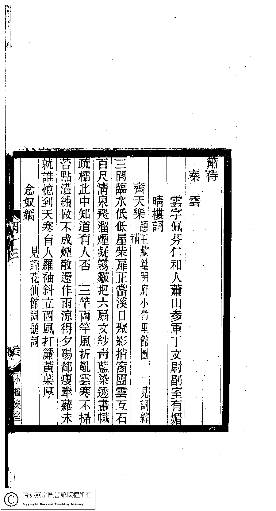 | (PRINT FRIENDLY VERSION) 閨秀詞鈔﹕十六卷(清徐乃昌輯)。清宣統元年(1909)小檀欒室刻本。 ![]() Page : 13.23a | click for larger image | Back |