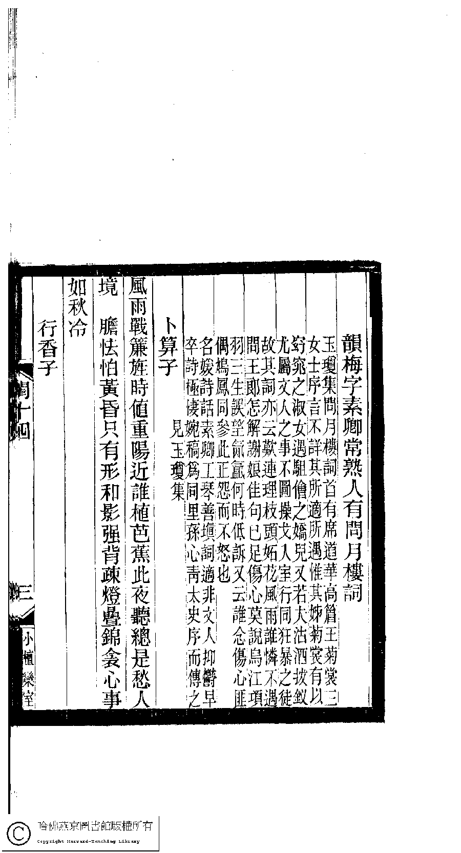 | (PRINT FRIENDLY VERSION) 閨秀詞鈔﹕十六卷(清徐乃昌輯)。清宣統元年(1909)小檀欒室刻本。 ![]() Page : 14.3a | click for larger image | 閨秀詞鈔﹕十六卷(清徐乃昌輯)。清宣統元年(1909)小檀欒室刻本。![]() Page : 14.2b | click for larger image | Back |