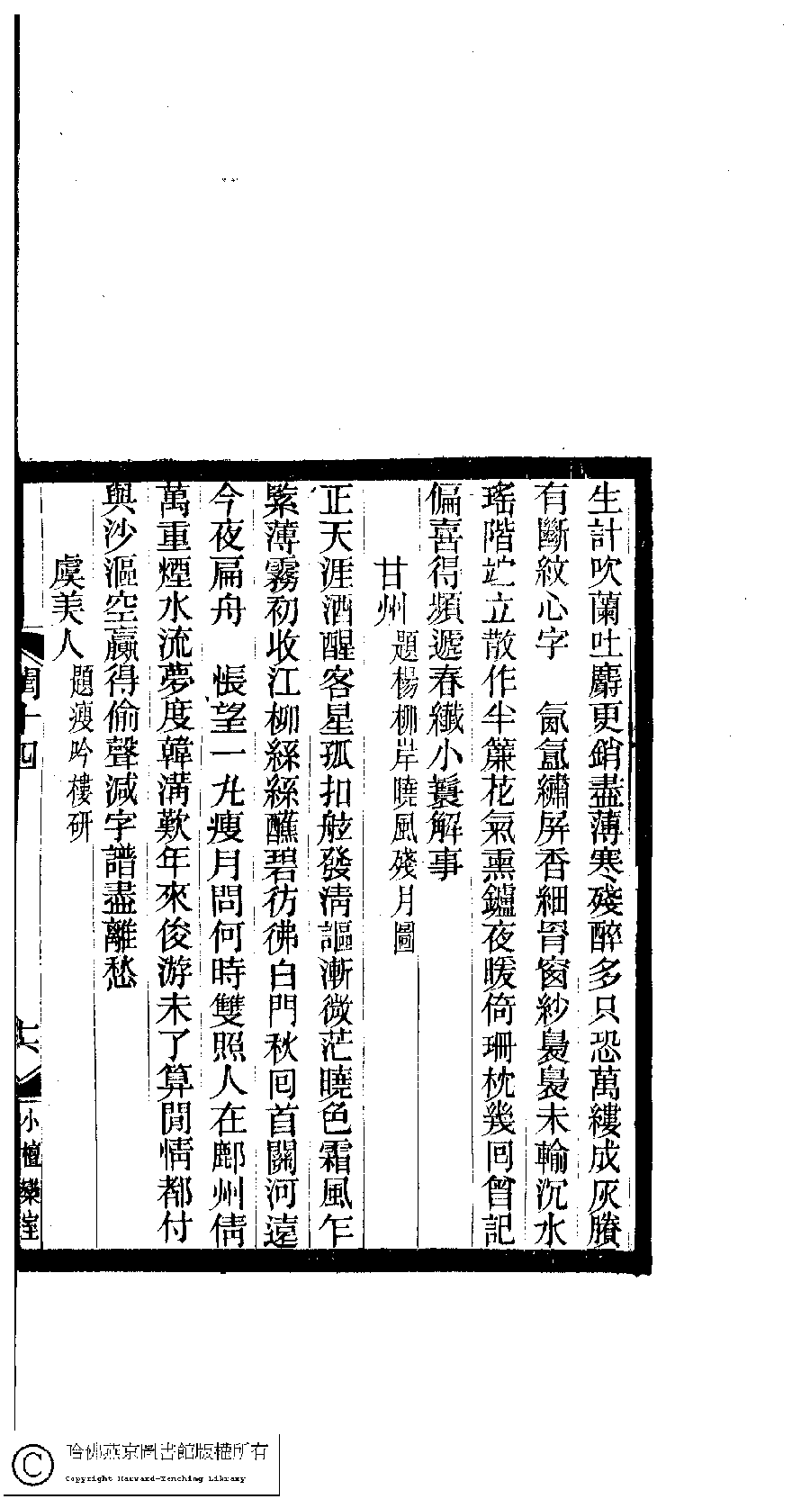 Poem [Gan zhou : Ti Yang liu an xiao feng can yue tu]