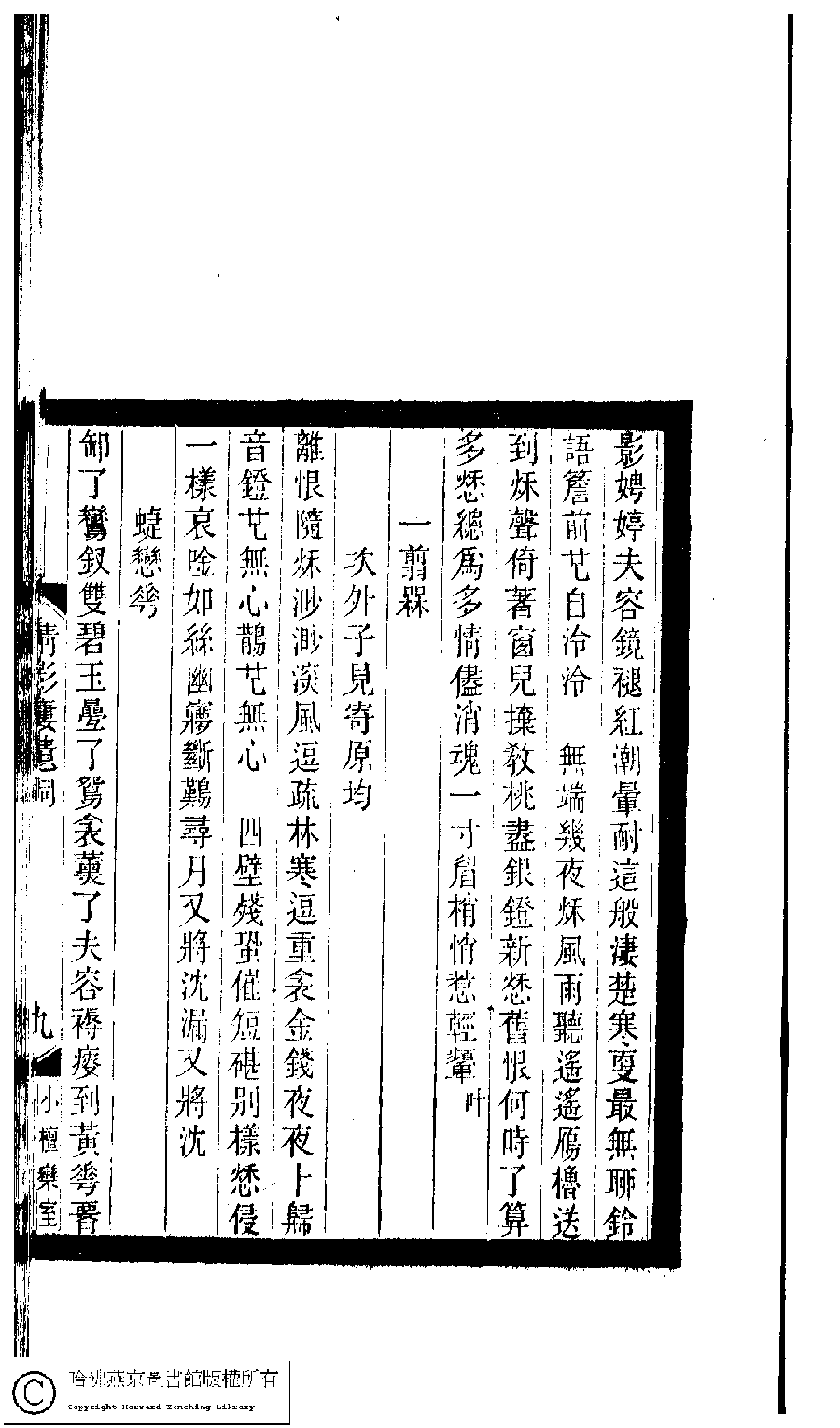 | Appears in: Xiao tan luan shi hui ke gui xiu ci: 10 ji 100 zhong 100 juan (edited by Xu Naichang, Qing dynasty): Qian ying lou yi ci: 1 juan |