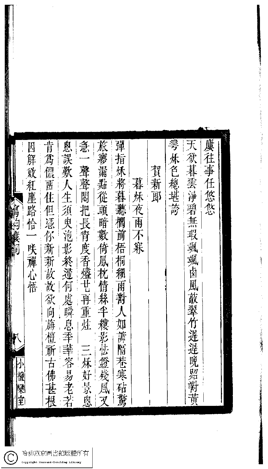 | Appears in: Xiao tan luan shi hui ke gui xiu ci: 10 ji 100 zhong 100 juan (edited by Xu Naichang, Qing dynasty): Xie yun lou ci: 1 juan |