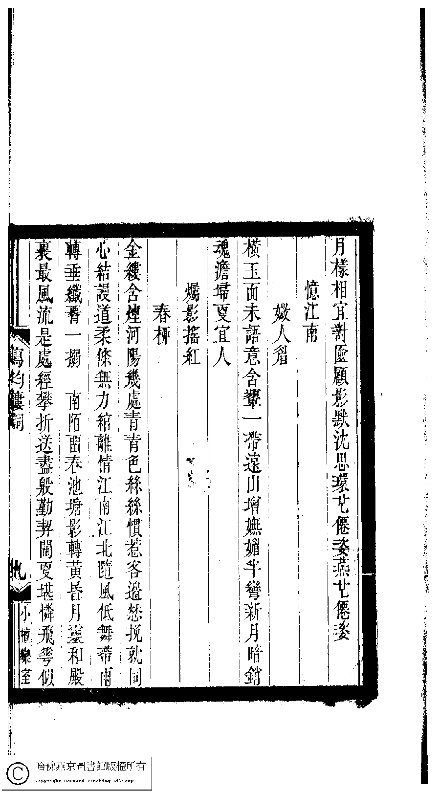 | Appears in: Xiao tan luan shi hui ke gui xiu ci: 10 ji 100 zhong 100 juan (edited by Xu Naichang, Qing dynasty): Xie yun lou ci: 1 juan |