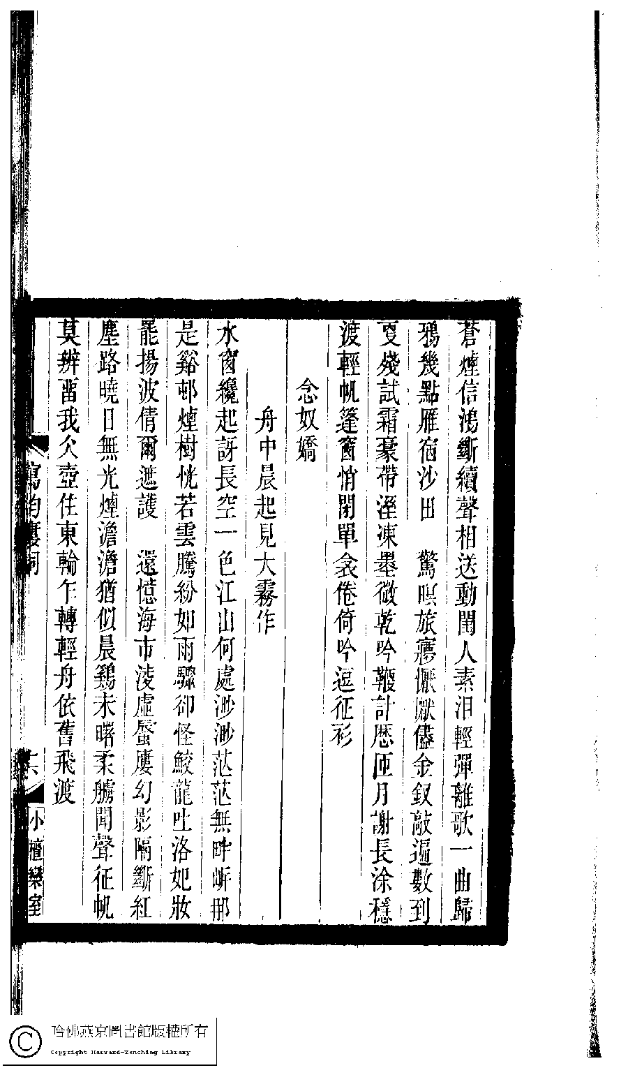 | (PRINT FRIENDLY VERSION) 小檀欒室彙刻閨秀詞﹕十集一百種一百卷(清徐乃昌輯) : 寫均樓詞﹕一卷。清光緒二十二年(1896)南陵徐氏刻本。 ![]() Page : 寫均樓詞.16a | click for larger image | 小檀欒室彙刻閨秀詞﹕十集一百種一百卷(清徐乃昌輯) : 寫均樓詞﹕一卷。清光緒二十二年(1896)南陵徐氏刻本。![]() Page : 寫均樓詞.15b | click for larger image | Back |