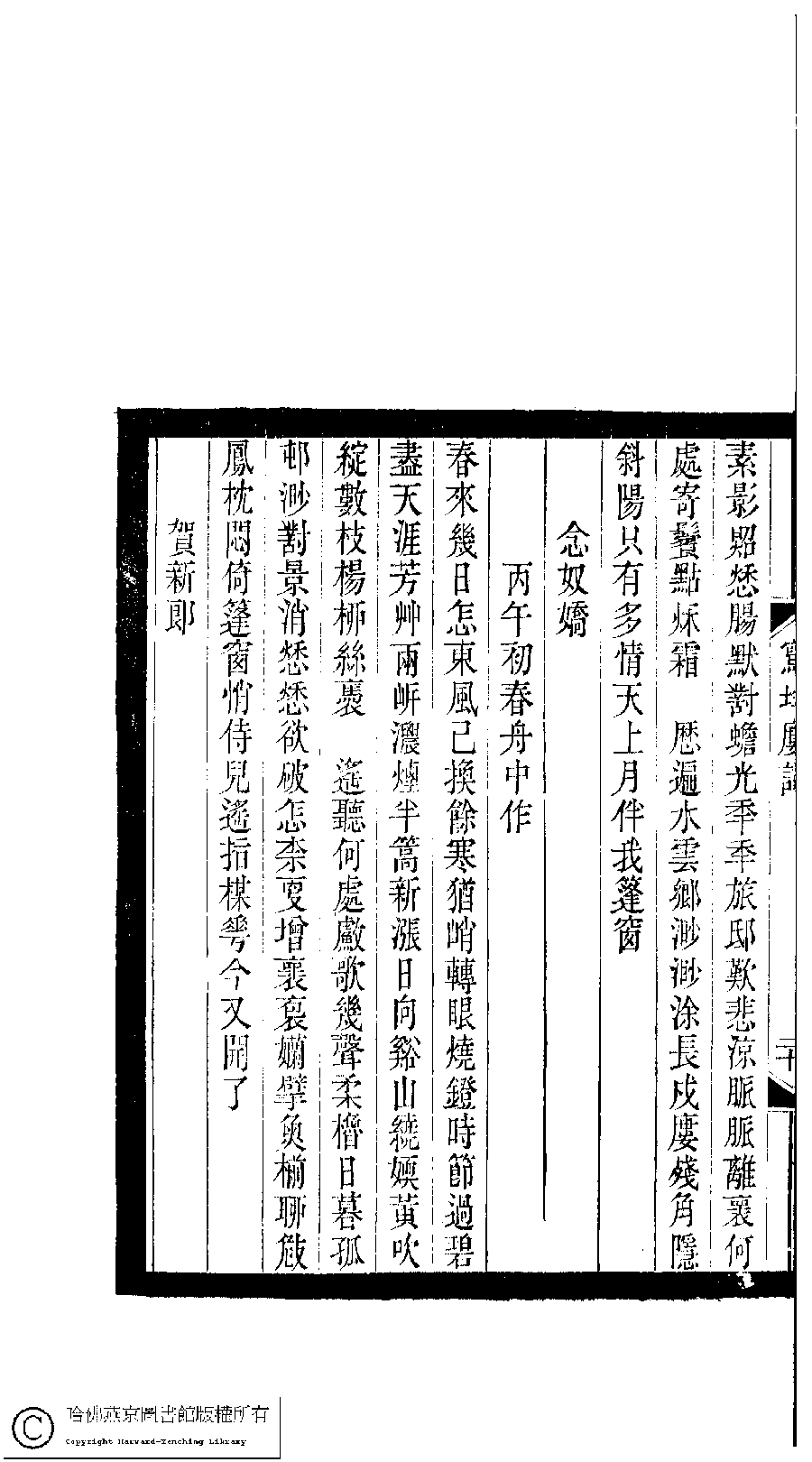 | Appears in: Xiao tan luan shi hui ke gui xiu ci: 10 ji 100 zhong 100 juan (edited by Xu Naichang, Qing dynasty): Xie yun lou ci: 1 juan |