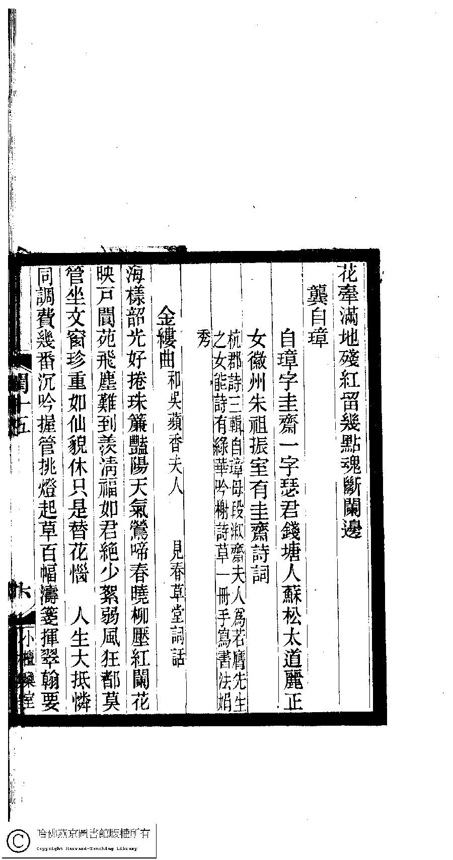 | (PRINT FRIENDLY VERSION) 閨秀詞鈔﹕十六卷(清徐乃昌輯)。清宣統元年(1909)小檀欒室刻本。 ![]() Page : 15.6b | click for larger image | 閨秀詞鈔﹕十六卷(清徐乃昌輯)。清宣統元年(1909)小檀欒室刻本。![]() Page : 15.6a | click for larger image | Back |