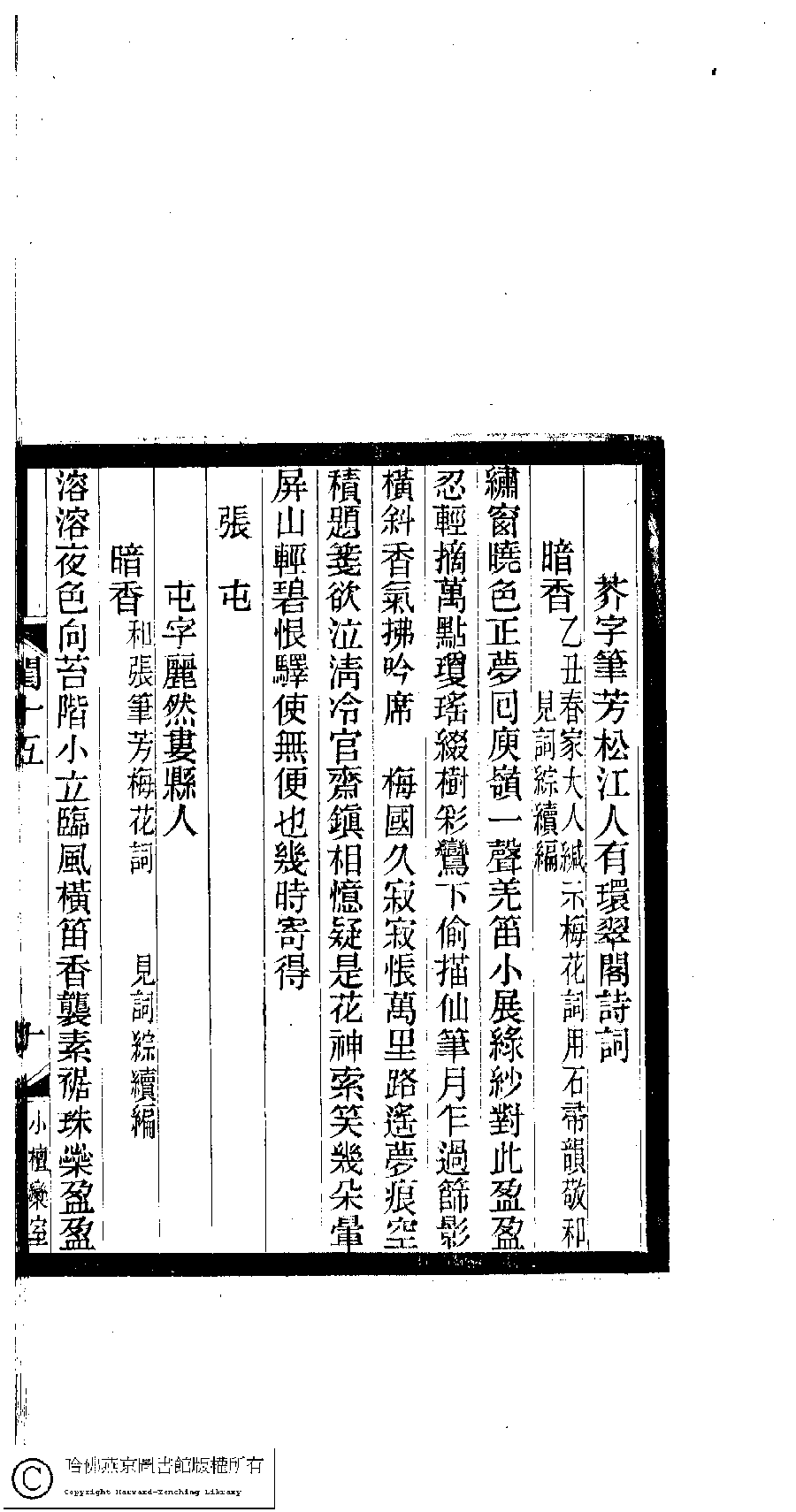 | (PRINT FRIENDLY VERSION) 閨秀詞鈔﹕十六卷(清徐乃昌輯)。清宣統元年(1909)小檀欒室刻本。 ![]() Page : 15.10a | click for larger image | Back |