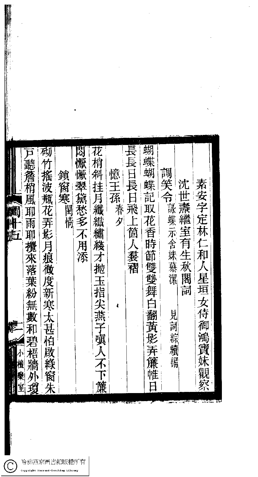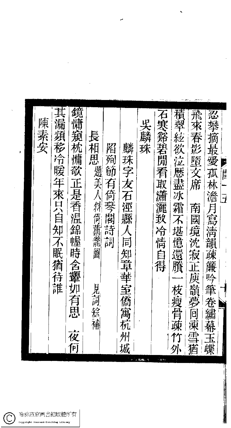 | (PRINT FRIENDLY VERSION) 閨秀詞鈔﹕十六卷(清徐乃昌輯)。清宣統元年(1909)小檀欒室刻本。 ![]() Page : 15.11a | click for larger image | 閨秀詞鈔﹕十六卷(清徐乃昌輯)。清宣統元年(1909)小檀欒室刻本。![]() Page : 15.10b | click for larger image | Back |