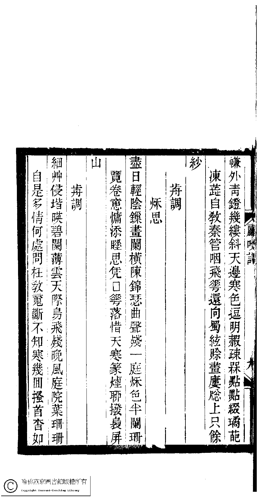 | (PRINT FRIENDLY VERSION) 小檀欒室彙刻閨秀詞﹕十集一百種一百卷(清徐乃昌輯) : 鸝吹詞﹕一卷。清光緒二十二年(1896)南陵徐氏刻本。 ![]() Page : 1.9b | click for larger image | 小檀欒室彙刻閨秀詞﹕十集一百種一百卷(清徐乃昌輯) : 鸝吹詞﹕一卷。清光緒二十二年(1896)南陵徐氏刻本。![]() Page : 1.9a | click for larger image | Back |