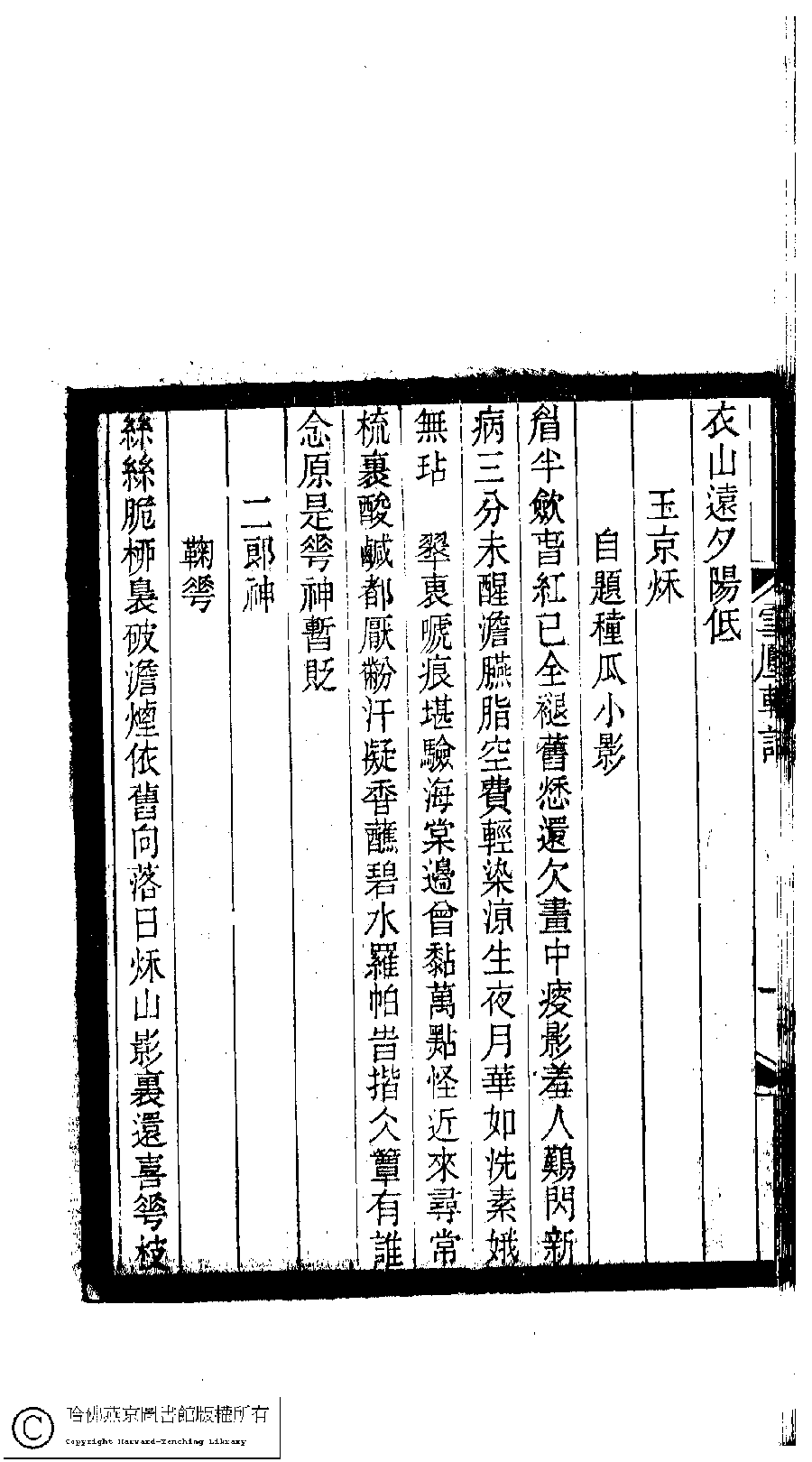 | Appears in: Xiao tan luan shi hui ke gui xiu ci: 10 ji 100 zhong 100 juan (edited by Xu Naichang, Qing dynasty): Xue ya xuan ci: 1 juan |