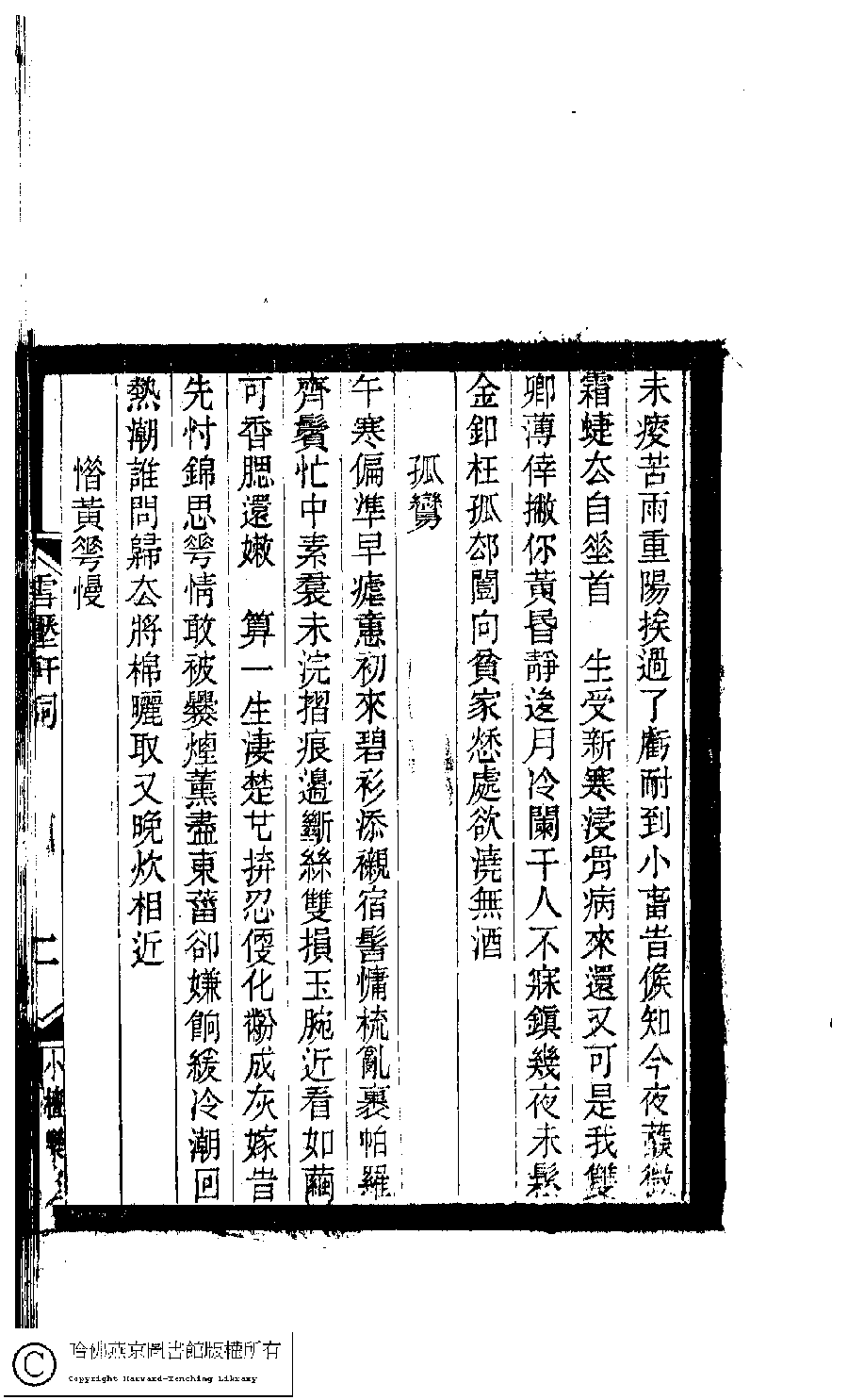 | Appears in: Xiao tan luan shi hui ke gui xiu ci: 10 ji 100 zhong 100 juan (edited by Xu Naichang, Qing dynasty): Xue ya xuan ci: 1 juan |