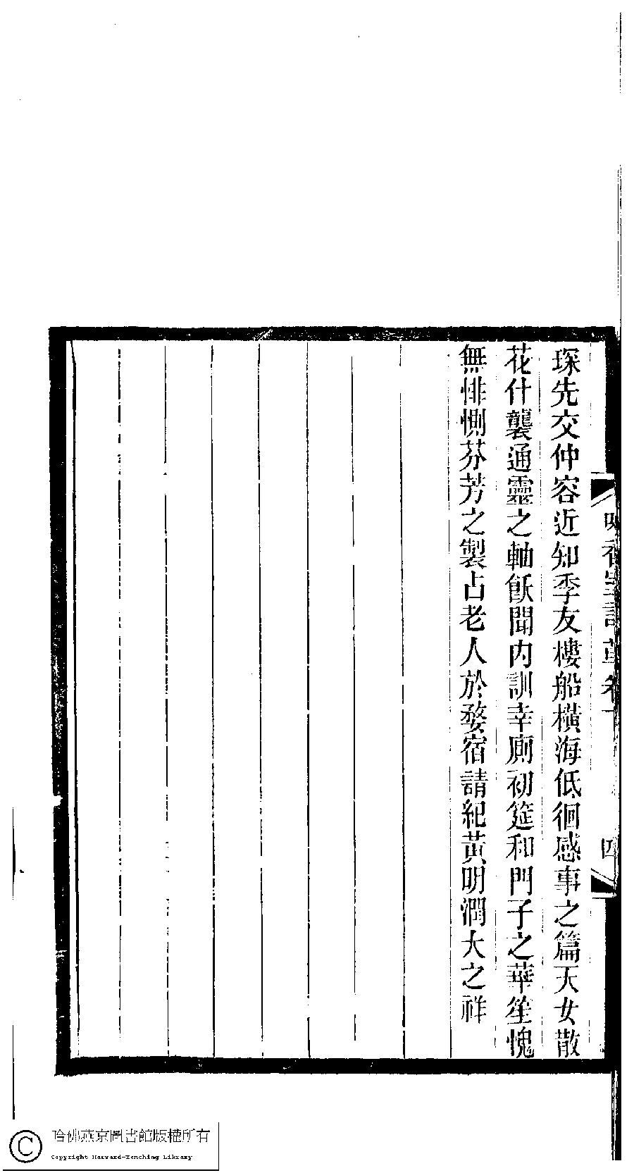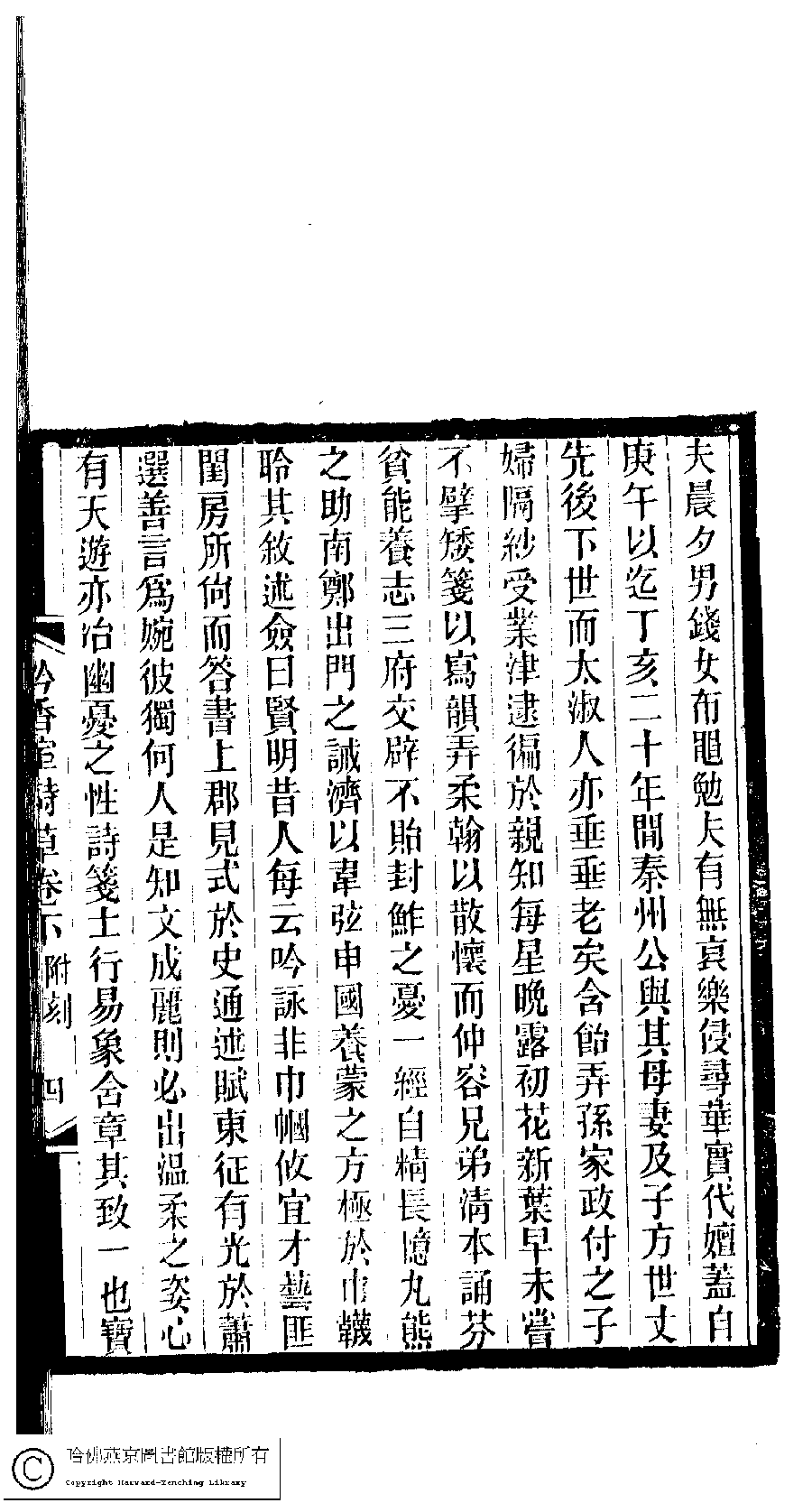 | (PRINT FRIENDLY VERSION) 吟香室詩草﹕二卷﹐續刻﹕一卷﹐附刻﹕一卷(清楊蘊輝撰)。清光緒二十三年(1897)刻本。 ![]() Page : 附刻.4b | click for larger image | 吟香室詩草﹕二卷﹐續刻﹕一卷﹐附刻﹕一卷(清楊蘊輝撰)。清光緒二十三年(1897)刻本。![]() Page : 附刻.4a | click for larger image | 吟香室詩草﹕二卷﹐續刻﹕一卷﹐附刻﹕一卷(清楊蘊輝撰)。清光緒二十三年(1897)刻本。![]() Page : 附刻.3b | click for larger image | 吟香室詩草﹕二卷﹐續刻﹕一卷﹐附刻﹕一卷(清楊蘊輝撰)。清光緒二十三年(1897)刻本。![]() Page : 附刻.3a | click for larger image | Back |