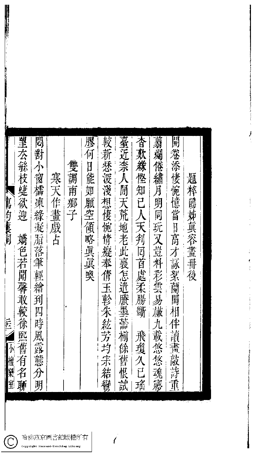 | Appears in: Xiao tan luan shi hui ke gui xiu ci: 10 ji 100 zhong 100 juan (edited by Xu Naichang, Qing dynasty): Xie yun lou ci: 1 juan |