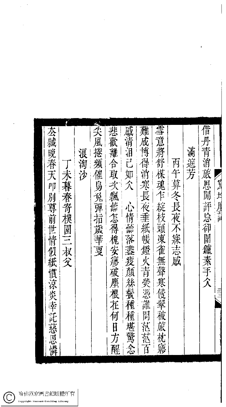 | (PRINT FRIENDLY VERSION) 小檀欒室彙刻閨秀詞﹕十集一百種一百卷(清徐乃昌輯) : 寫均樓詞﹕一卷。清光緒二十二年(1896)南陵徐氏刻本。 ![]() Page : 寫均樓詞.22b | click for larger image | 小檀欒室彙刻閨秀詞﹕十集一百種一百卷(清徐乃昌輯) : 寫均樓詞﹕一卷。清光緒二十二年(1896)南陵徐氏刻本。![]() Page : 寫均樓詞.22a | click for larger image | Back |