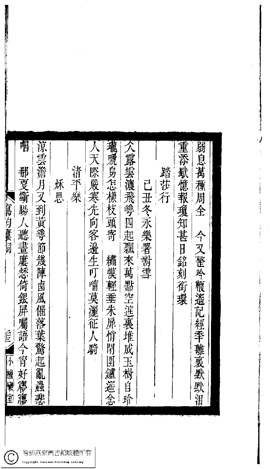 | Appears in: Xiao tan luan shi hui ke gui xiu ci: 10 ji 100 zhong 100 juan (edited by Xu Naichang, Qing dynasty): Xie yun lou ci: 1 juan |
