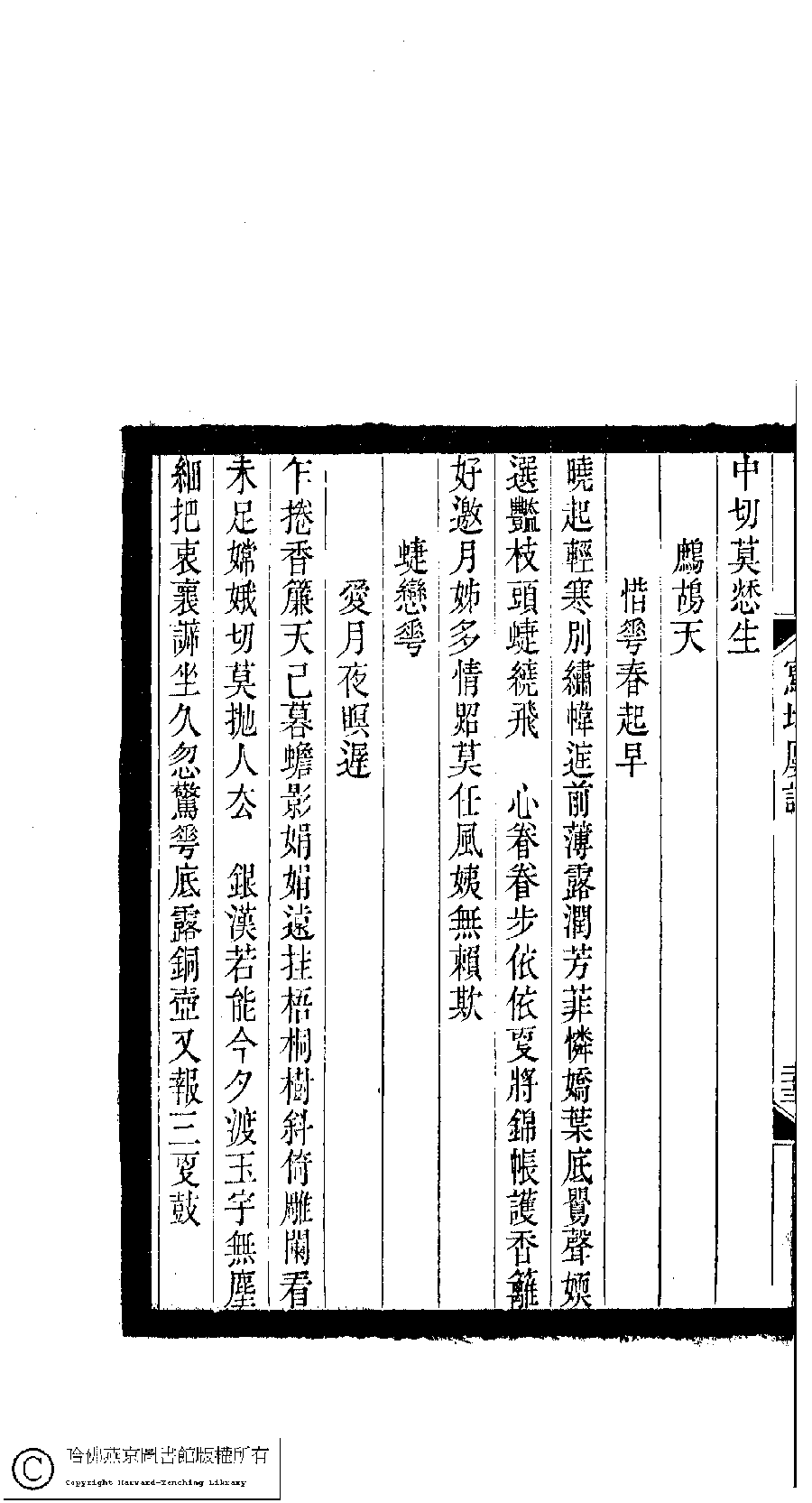 | Appears in: Xiao tan luan shi hui ke gui xiu ci: 10 ji 100 zhong 100 juan (edited by Xu Naichang, Qing dynasty): Xie yun lou ci: 1 juan |