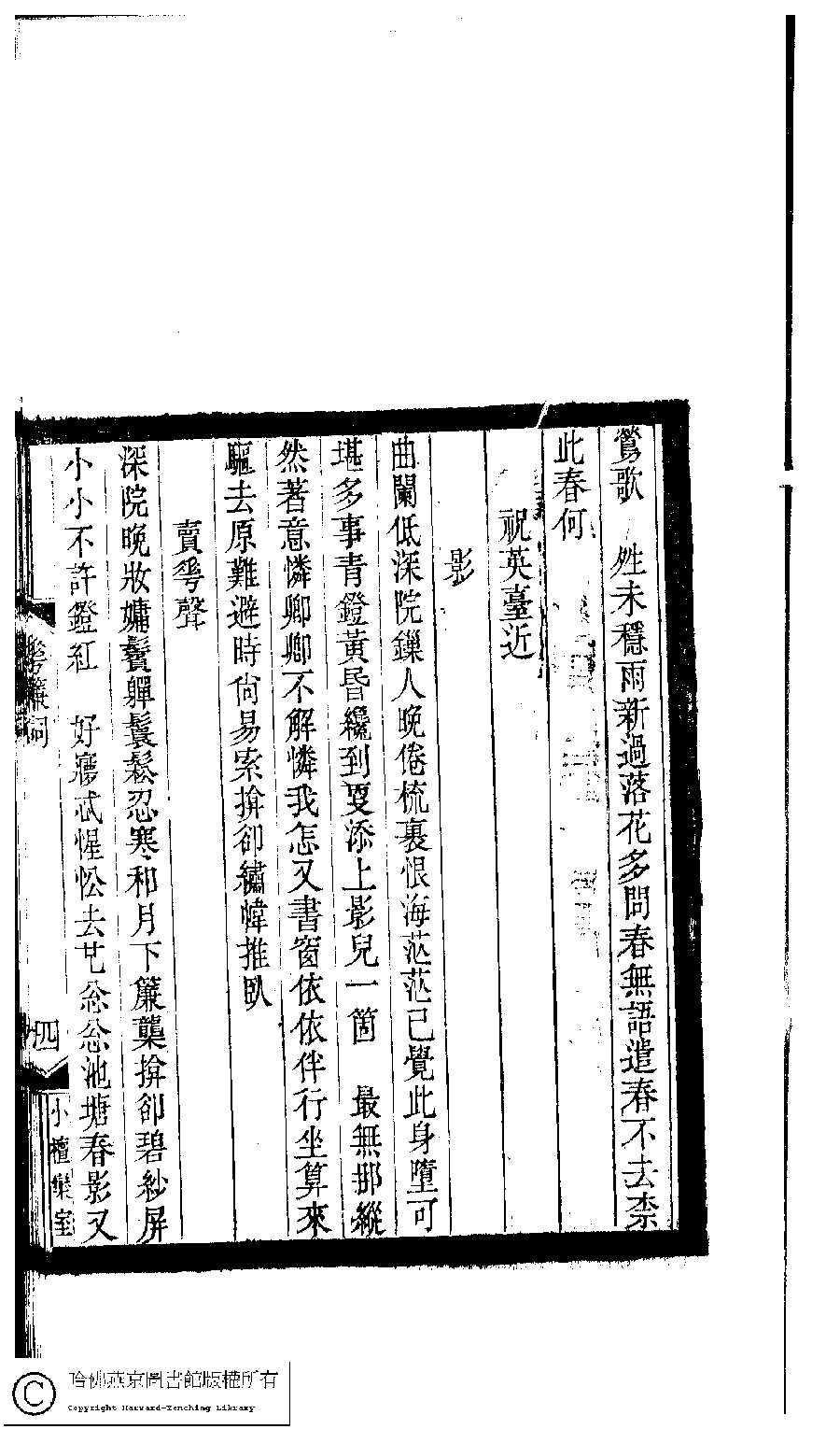 | (PRINT FRIENDLY VERSION) 小檀欒室彙刻閨秀詞﹕十集一百種一百卷(清徐乃昌輯) : 花簾詞﹕一卷。清光緒二十二年(1896)南陵徐氏刻本。 ![]() Page : 花簾詞.4b | click for larger image | 小檀欒室彙刻閨秀詞﹕十集一百種一百卷(清徐乃昌輯) : 花簾詞﹕一卷。清光緒二十二年(1896)南陵徐氏刻本。![]() Page : 花簾詞.4a | click for larger image | Back |