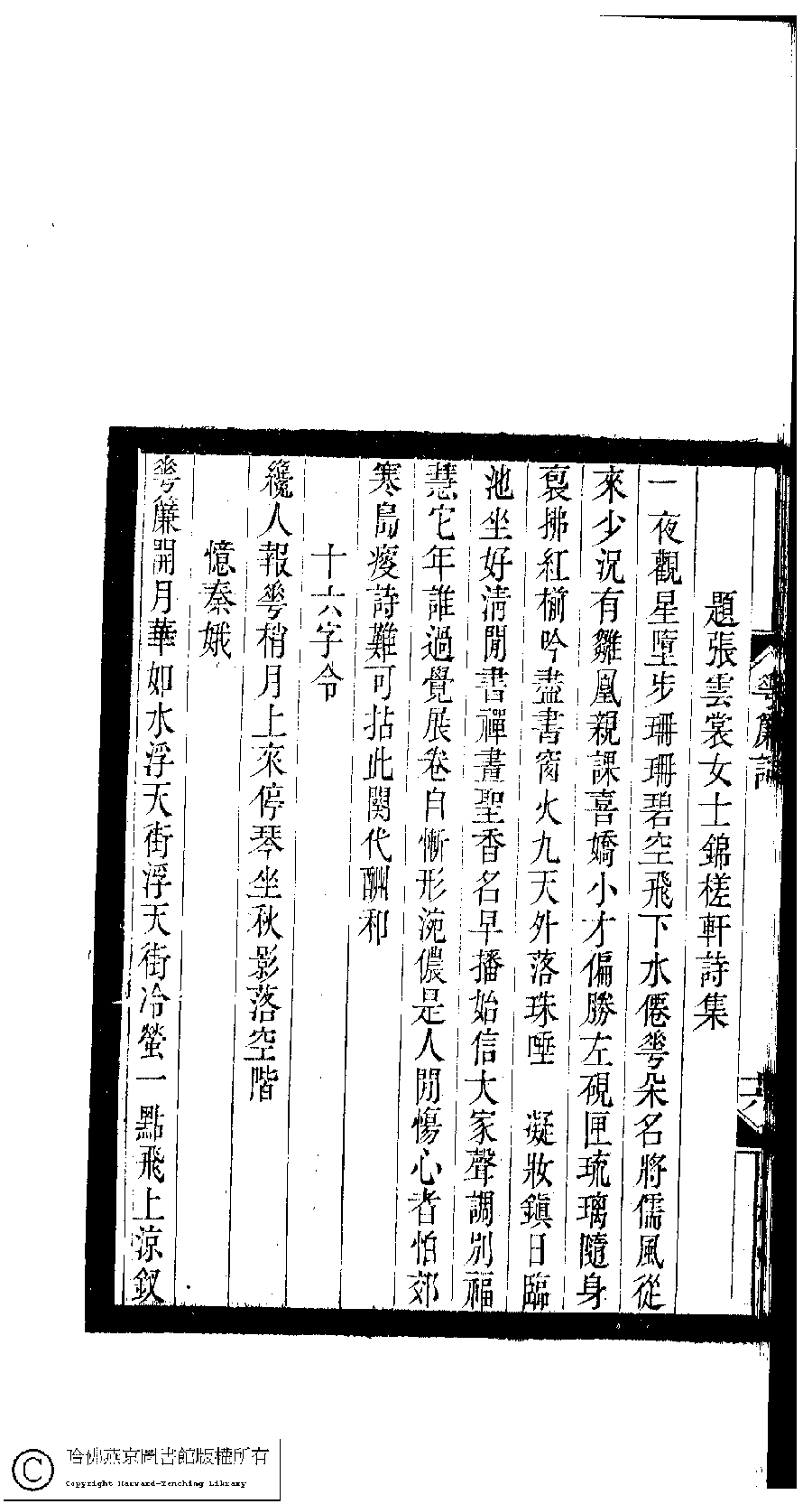 Poem [Jin lü qu : Ti Zhang Yunchang nü shi Jin cha xuan shi ji]