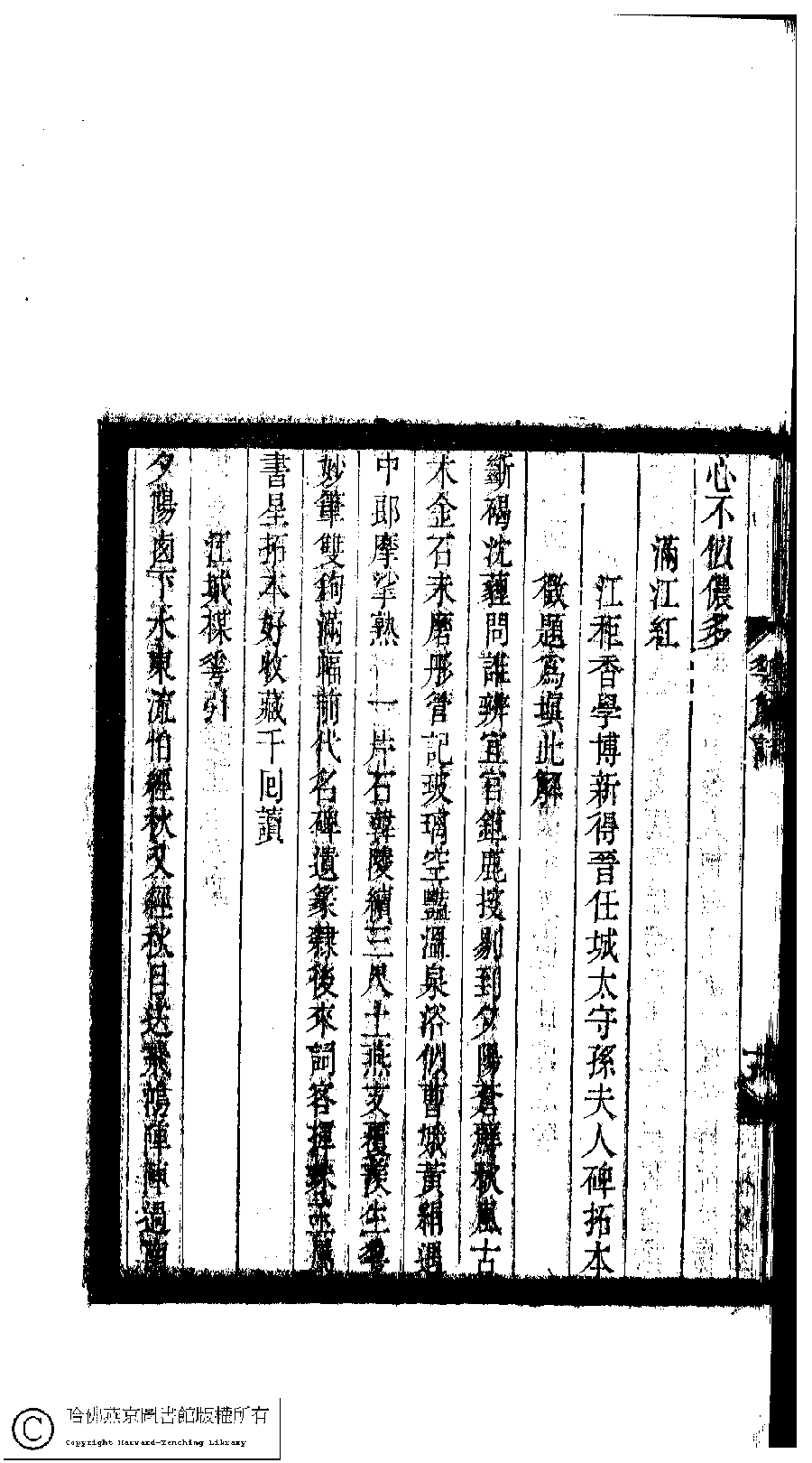 | (PRINT FRIENDLY VERSION) 小檀欒室彙刻閨秀詞﹕十集一百種一百卷(清徐乃昌輯) : 花簾詞﹕一卷。清光緒二十二年(1896)南陵徐氏刻本。 ![]() Page : 花簾詞.19b | click for larger image | 小檀欒室彙刻閨秀詞﹕十集一百種一百卷(清徐乃昌輯) : 花簾詞﹕一卷。清光緒二十二年(1896)南陵徐氏刻本。![]() Page : 花簾詞.19a | click for larger image | Back |