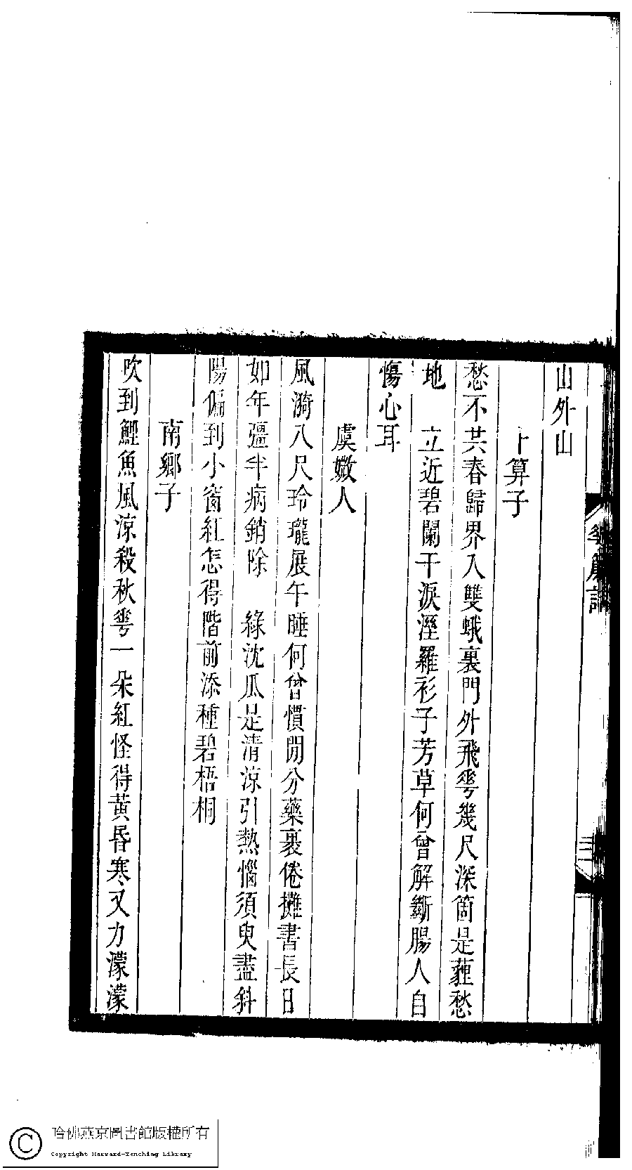 | (PRINT FRIENDLY VERSION) 小檀欒室彙刻閨秀詞﹕十集一百種一百卷(清徐乃昌輯) : 花簾詞﹕一卷。清光緒二十二年(1896)南陵徐氏刻本。 ![]() Page : 花簾詞.21b | click for larger image | Back |