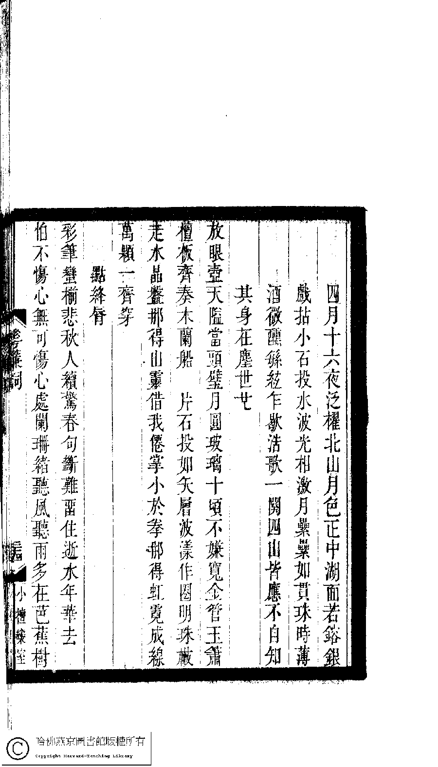 | Appears in: Xiao tan luan shi hui ke gui xiu ci: 10 ji 100 zhong 100 juan (edited by Xu Naichang, Qing dynasty): Hua lian ci: 1 juan |