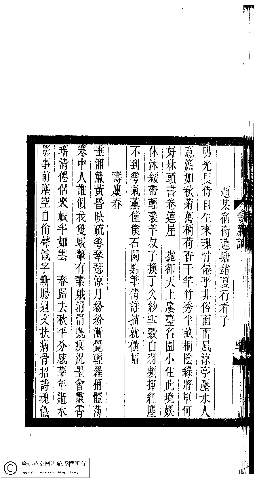 | (PRINT FRIENDLY VERSION) 小檀欒室彙刻閨秀詞﹕十集一百種一百卷(清徐乃昌輯) : 花簾詞﹕一卷。清光緒二十二年(1896)南陵徐氏刻本。 ![]() Page : 花簾詞.41a | click for larger image | 小檀欒室彙刻閨秀詞﹕十集一百種一百卷(清徐乃昌輯) : 花簾詞﹕一卷。清光緒二十二年(1896)南陵徐氏刻本。![]() Page : 花簾詞.40b | click for larger image | Back |