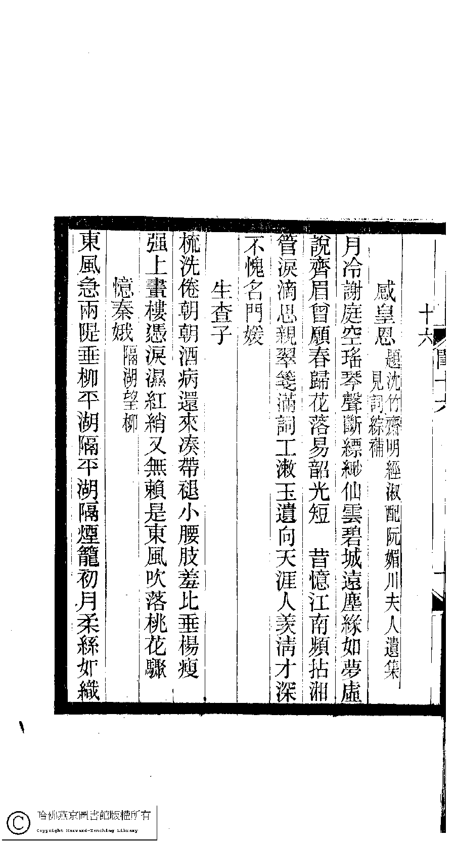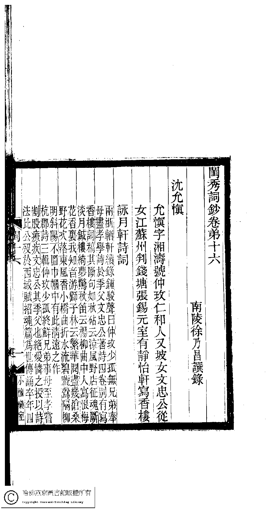 | (PRINT FRIENDLY VERSION) 閨秀詞鈔﹕十六卷(清徐乃昌輯)。清宣統元年(1909)小檀欒室刻本。 ![]() Page : 16.1b | click for larger image | 閨秀詞鈔﹕十六卷(清徐乃昌輯)。清宣統元年(1909)小檀欒室刻本。![]() Page : 16.1a | click for larger image | Back |