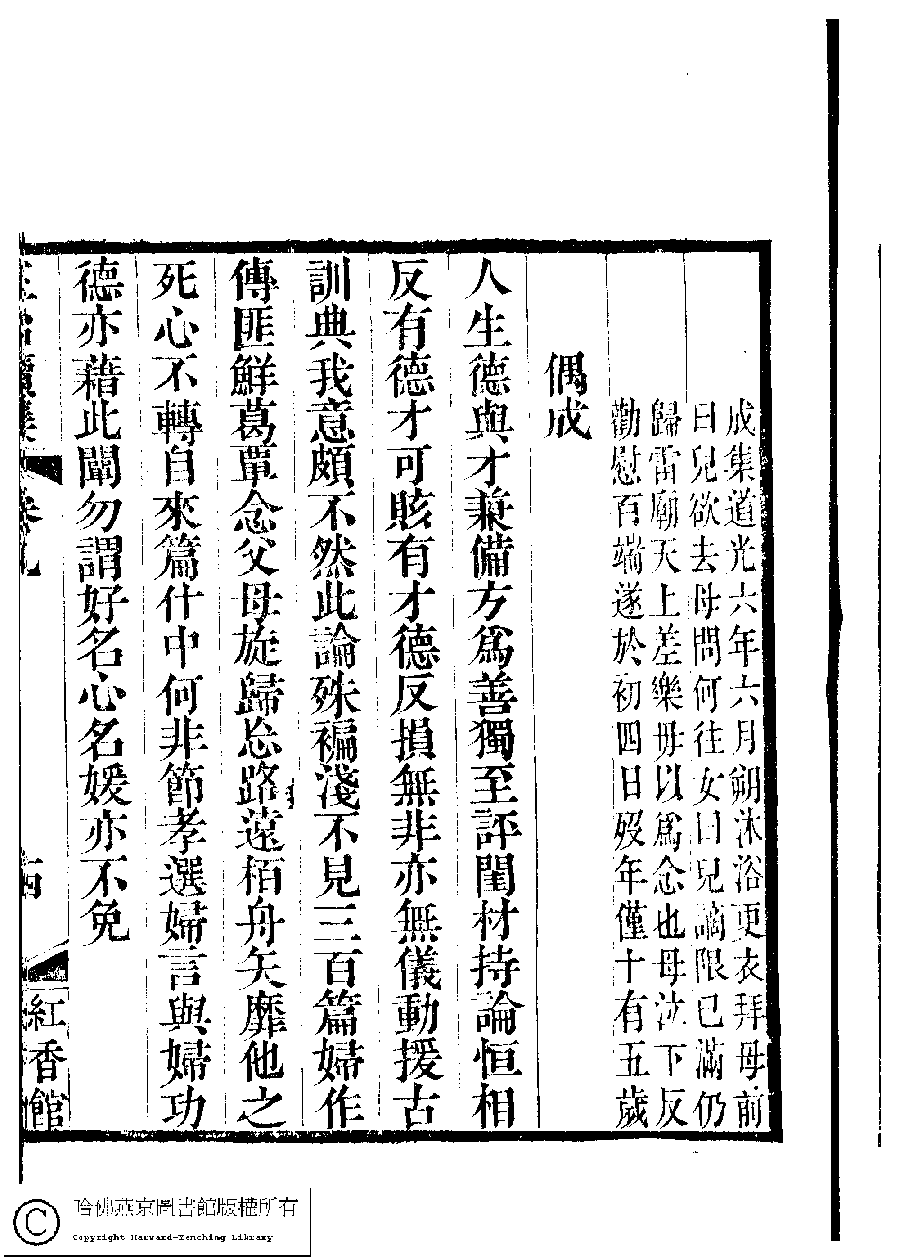 | (PRINT FRIENDLY VERSION) 國朝閨秀正始續集﹕十卷﹐附錄﹕一卷﹐補遺﹕一卷﹐輓詞﹕一卷(清惲珠輯)。清道光十六年(1836)紅香館刻本。 ![]() Page : 9.14b | click for larger image | 國朝閨秀正始續集﹕十卷﹐附錄﹕一卷﹐補遺﹕一卷﹐輓詞﹕一卷(清惲珠輯)。清道光十六年(1836)紅香館刻本。![]() Page : 9.14a | click for larger image | Back |