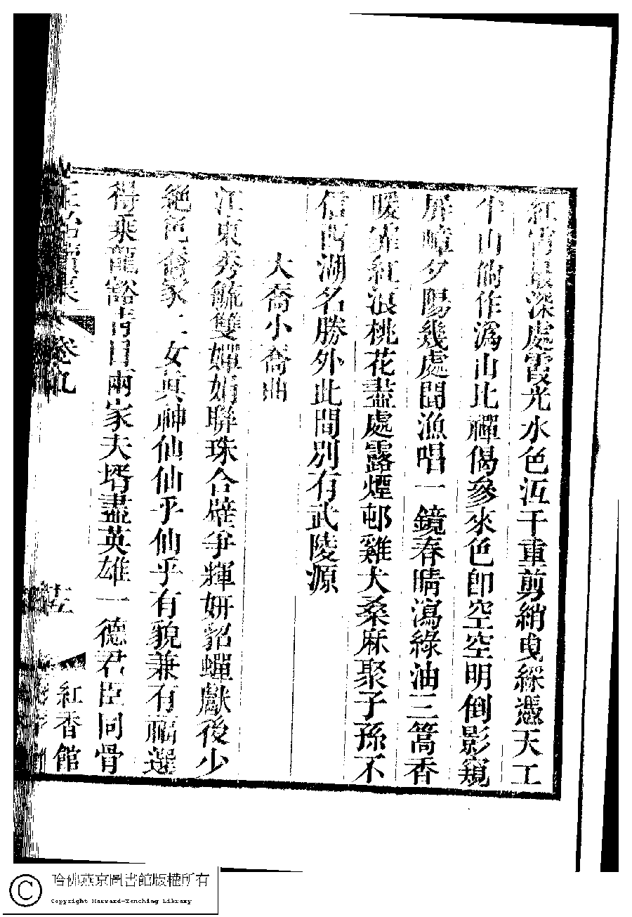 | (PRINT FRIENDLY VERSION) 國朝閨秀正始續集﹕十卷﹐附錄﹕一卷﹐補遺﹕一卷﹐輓詞﹕一卷(清惲珠輯)。清道光十六年(1836)紅香館刻本。 ![]() Page : 9.15a | click for larger image | 國朝閨秀正始續集﹕十卷﹐附錄﹕一卷﹐補遺﹕一卷﹐輓詞﹕一卷(清惲珠輯)。清道光十六年(1836)紅香館刻本。![]() Page : 9.14b | click for larger image | Back |