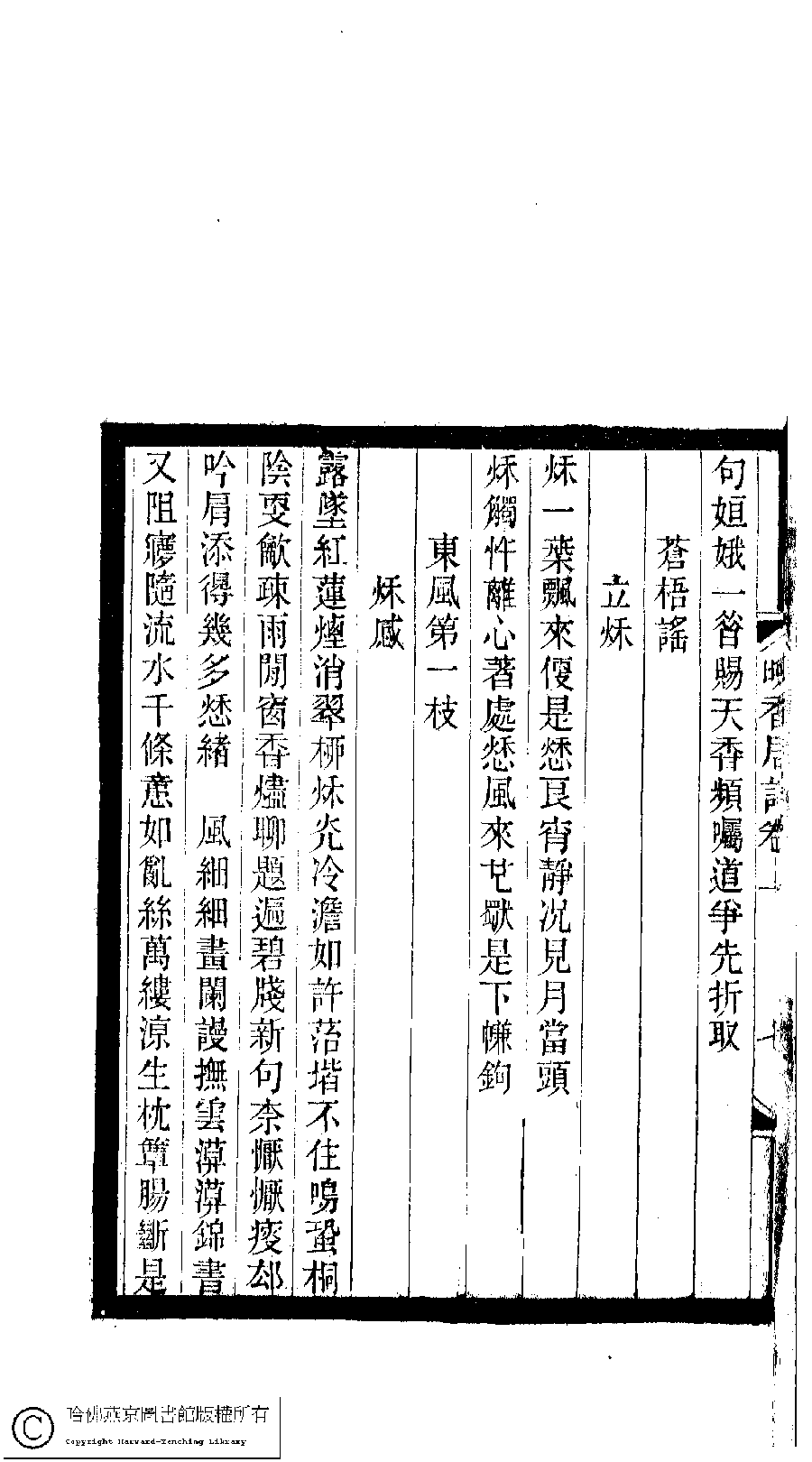 | Appears in: Xiao tan luan shi hui ke gui xiu ci: 10 ji 100 zhong 100 juan (edited by Xu Naichang, Qing dynasty): Wan xiang ju ci: 2 juan |