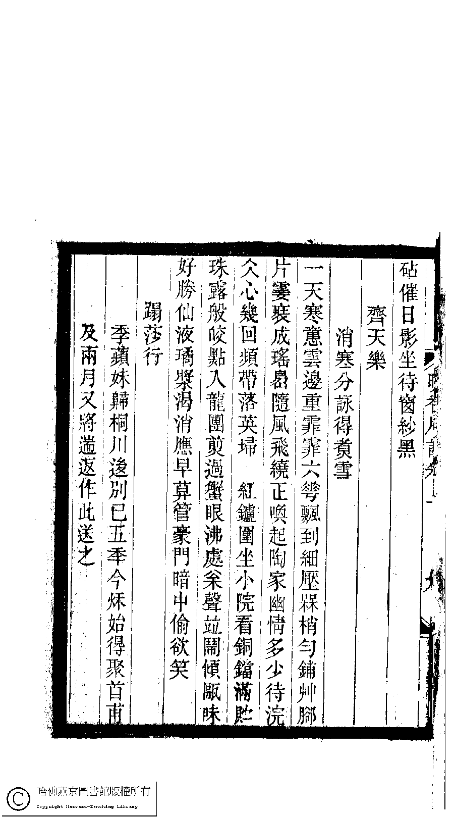 | (PRINT FRIENDLY VERSION) 小檀欒室彙刻閨秀詞﹕十集一百種一百卷(清徐乃昌輯) : 晚香居詞﹕二卷。清光緒二十二年(1896)南陵徐氏刻本。 ![]() Page : 卷上.10a | click for larger image | 小檀欒室彙刻閨秀詞﹕十集一百種一百卷(清徐乃昌輯) : 晚香居詞﹕二卷。清光緒二十二年(1896)南陵徐氏刻本。![]() Page : 卷上.9b | click for larger image | Back |