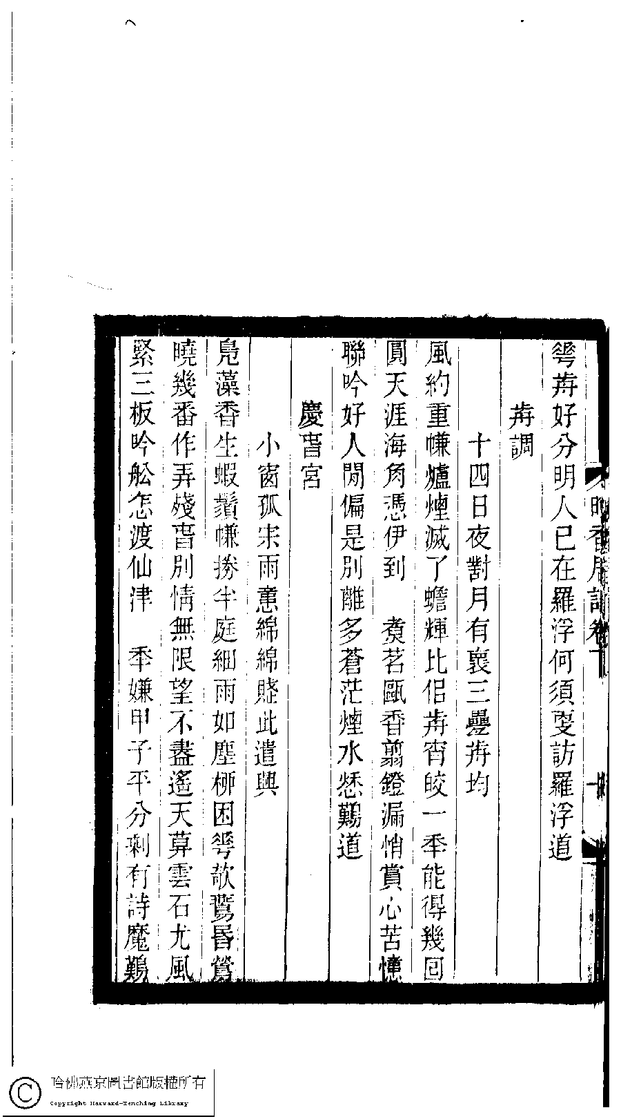 | (PRINT FRIENDLY VERSION) 小檀欒室彙刻閨秀詞﹕十集一百種一百卷(清徐乃昌輯) : 晚香居詞﹕二卷。清光緒二十二年(1896)南陵徐氏刻本。 ![]() Page : 卷下.2a | click for larger image | 小檀欒室彙刻閨秀詞﹕十集一百種一百卷(清徐乃昌輯) : 晚香居詞﹕二卷。清光緒二十二年(1896)南陵徐氏刻本。![]() Page : 卷下.1b | click for larger image | Back |