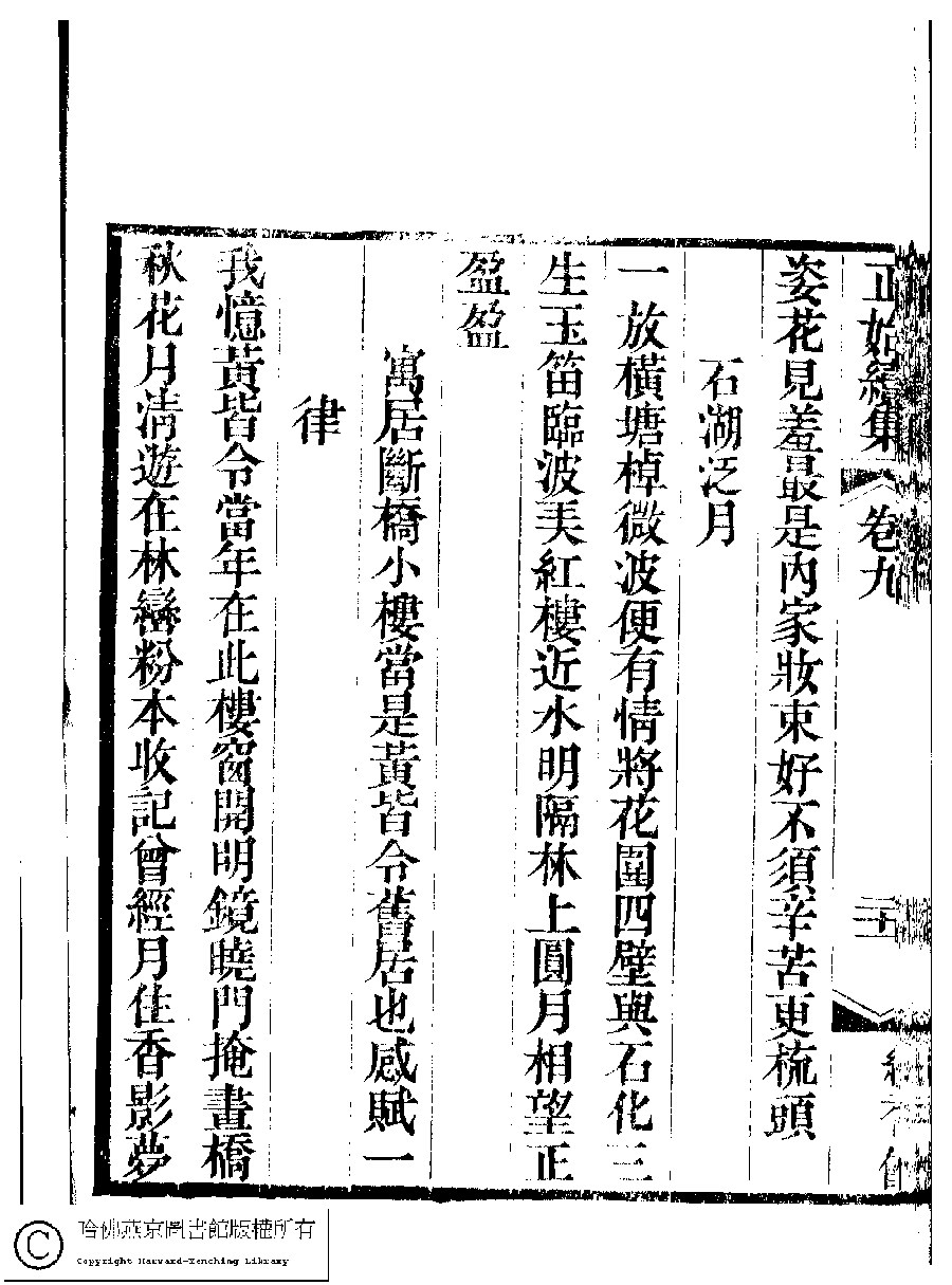 | (PRINT FRIENDLY VERSION) 國朝閨秀正始續集﹕十卷﹐附錄﹕一卷﹐補遺﹕一卷﹐輓詞﹕一卷(清惲珠輯)。清道光十六年(1836)紅香館刻本。 ![]() Page : 9.22a | click for larger image | 國朝閨秀正始續集﹕十卷﹐附錄﹕一卷﹐補遺﹕一卷﹐輓詞﹕一卷(清惲珠輯)。清道光十六年(1836)紅香館刻本。![]() Page : 9.21b | click for larger image | Back |