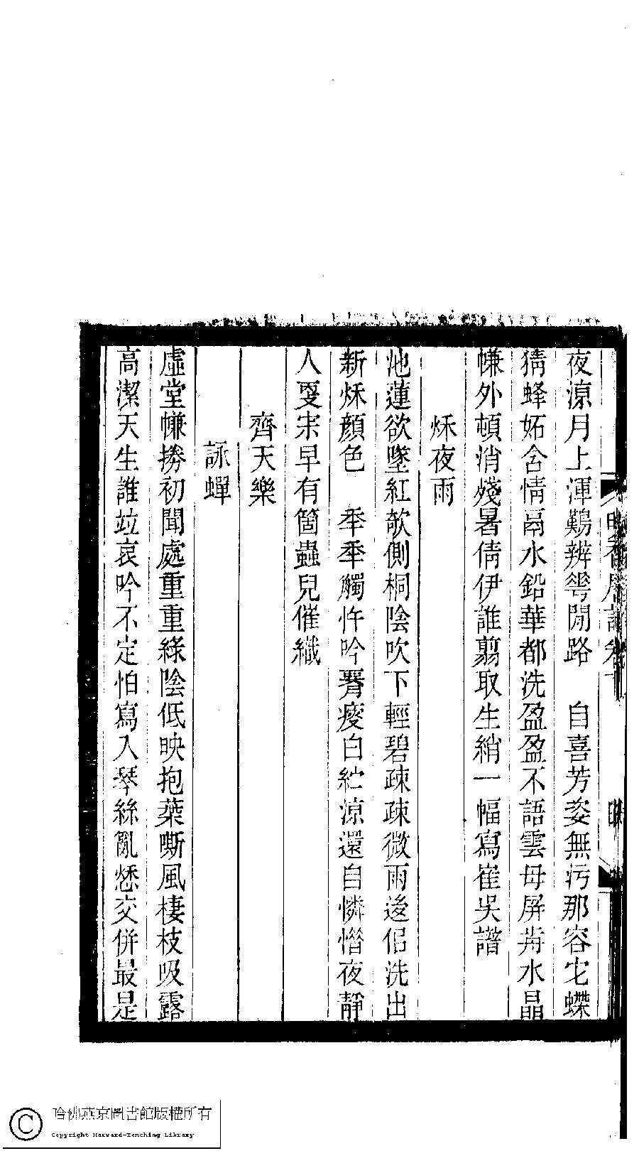 Poem [Qi tian le : Yong chan]