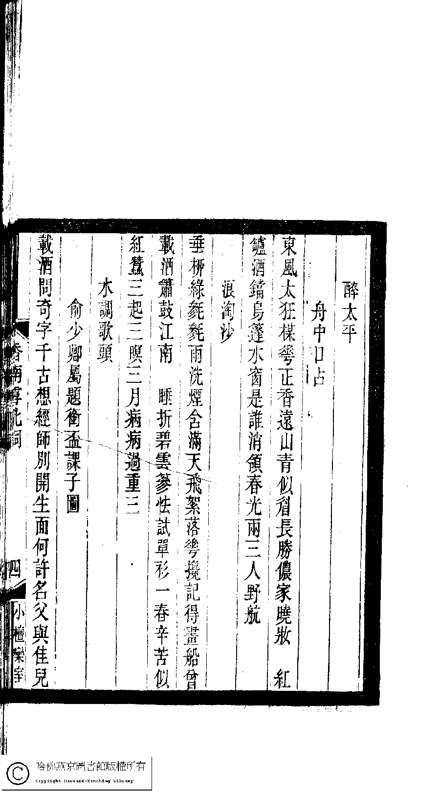 | Appears in: Xiao tan luan shi hui ke gui xiu ci: 10 ji 100 zhong 100 juan (edited by Xu Naichang, Qing dynasty): Xiang nan xue bei ci: 1 juan |